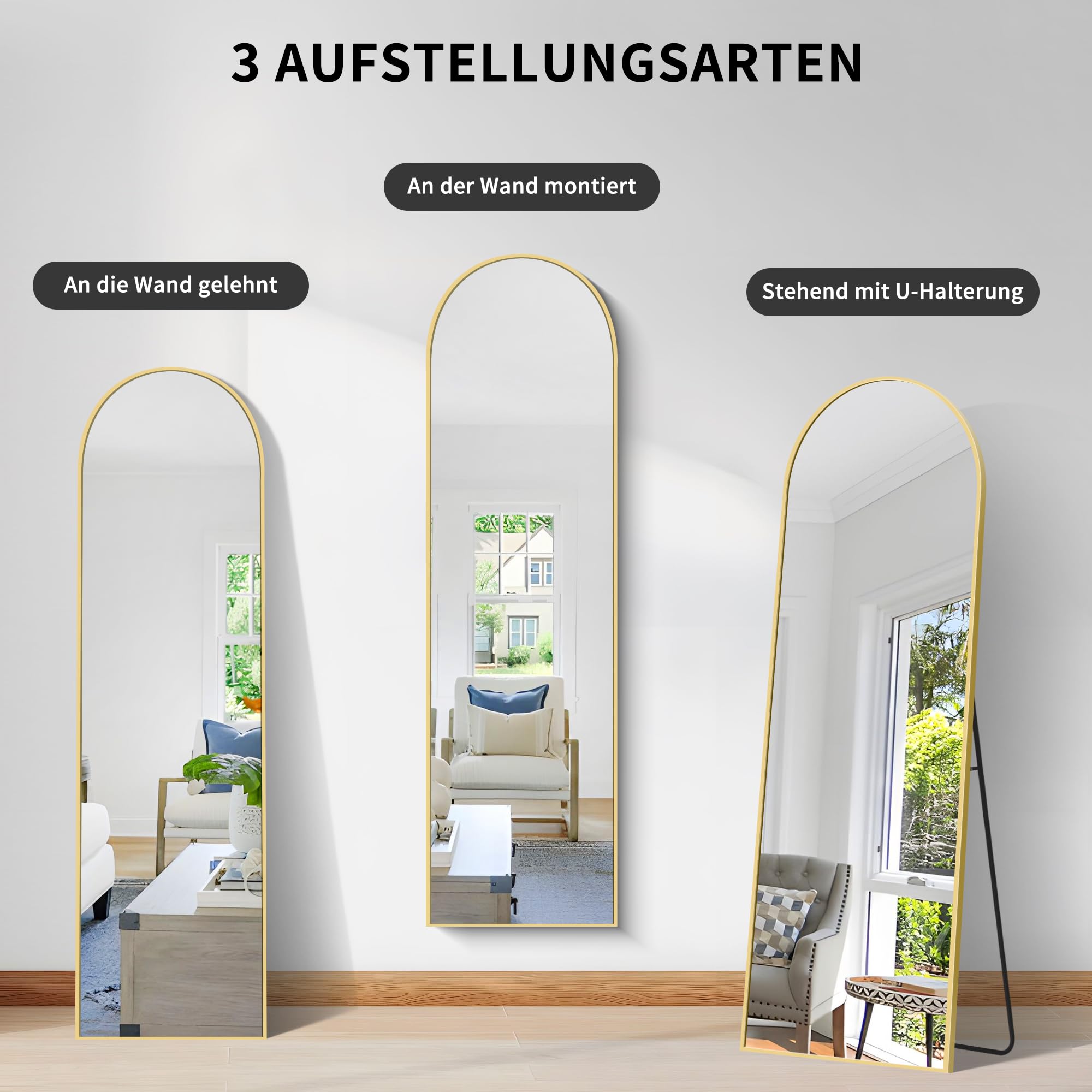 KOCUUY Bogen Standspiegel, 150 x 40 cm Grosser Gewölbter Ganzkörperspiegel, Gross Wandspiegel mit Gold Aluminium Rahmen, Hängend, Stehend, Kippbar, für Wohnzimmer, Schlafzimmer und Flure