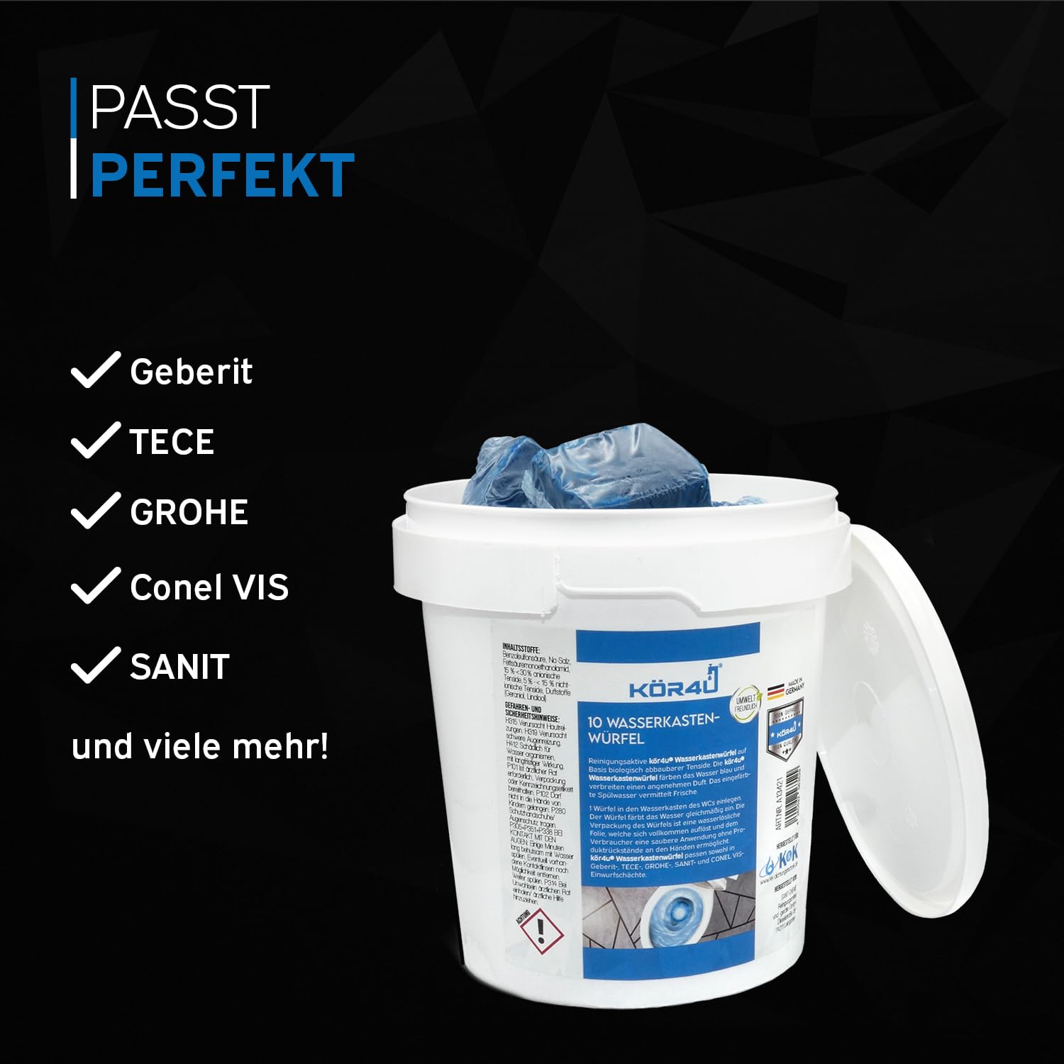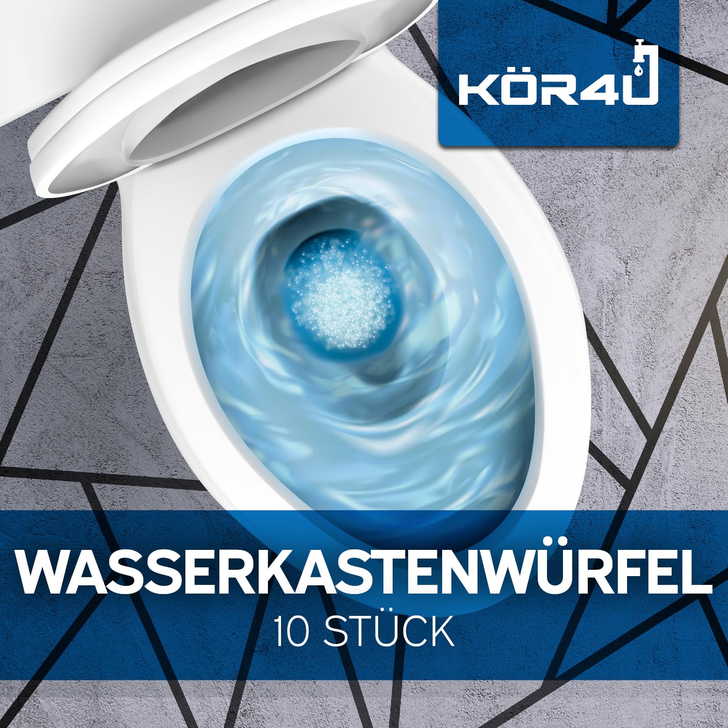 kör4u Wasserkastenwürfel – 10 blaue WC-Tabs, frisch, selbstaktive Reinigung gegen Kalk & Ablagerungen, umweltfreundlich & biologisch abbaubar
