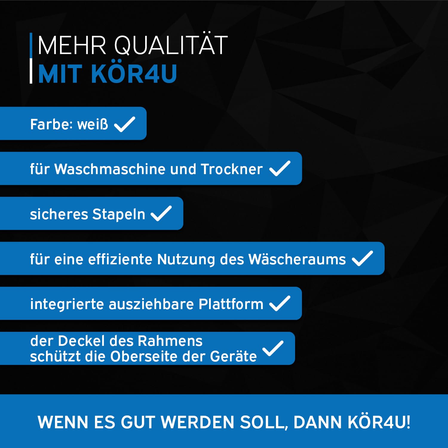 Wenn es darum geht, Ihren Wäscheraum zu organisieren und Platz zu sparen, ist unser Zwischenbaurahmen die perfekte Lösung. Hergestellt aus hochwertigem Stahl, bietet er eine solide Konstruktion, die Ihre Waschmaschine und Trockner sicher stapelt, ohne dabei die Stabilität zu beeinträchtigen. Mit diesem Rahmen können Sie nicht nur wertvollen Raum sparen, sondern auch die Effizienz und Funktionalität Ihres Wäscheraums verbessern.