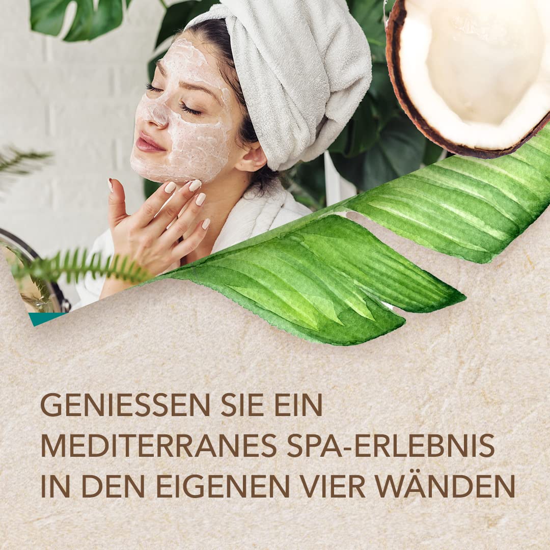 Die natürlichen Inhaltsstoffe wie Kokosnuss und Vanille sorgen nicht nur für ein erfrischendes und belebendes Gefühl, sondern versorgen die Haut auch mit intensiver Feuchtigkeit und schützen vor dem Austrocknen. Das Meersalz reinigt die Haut tiefenwirksam und stärkt die Hautstruktur.