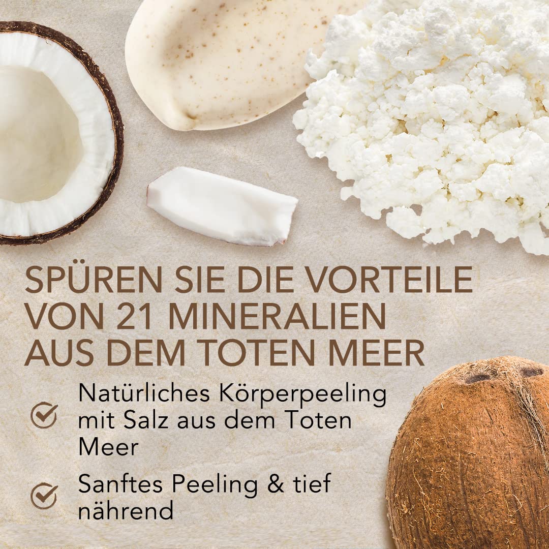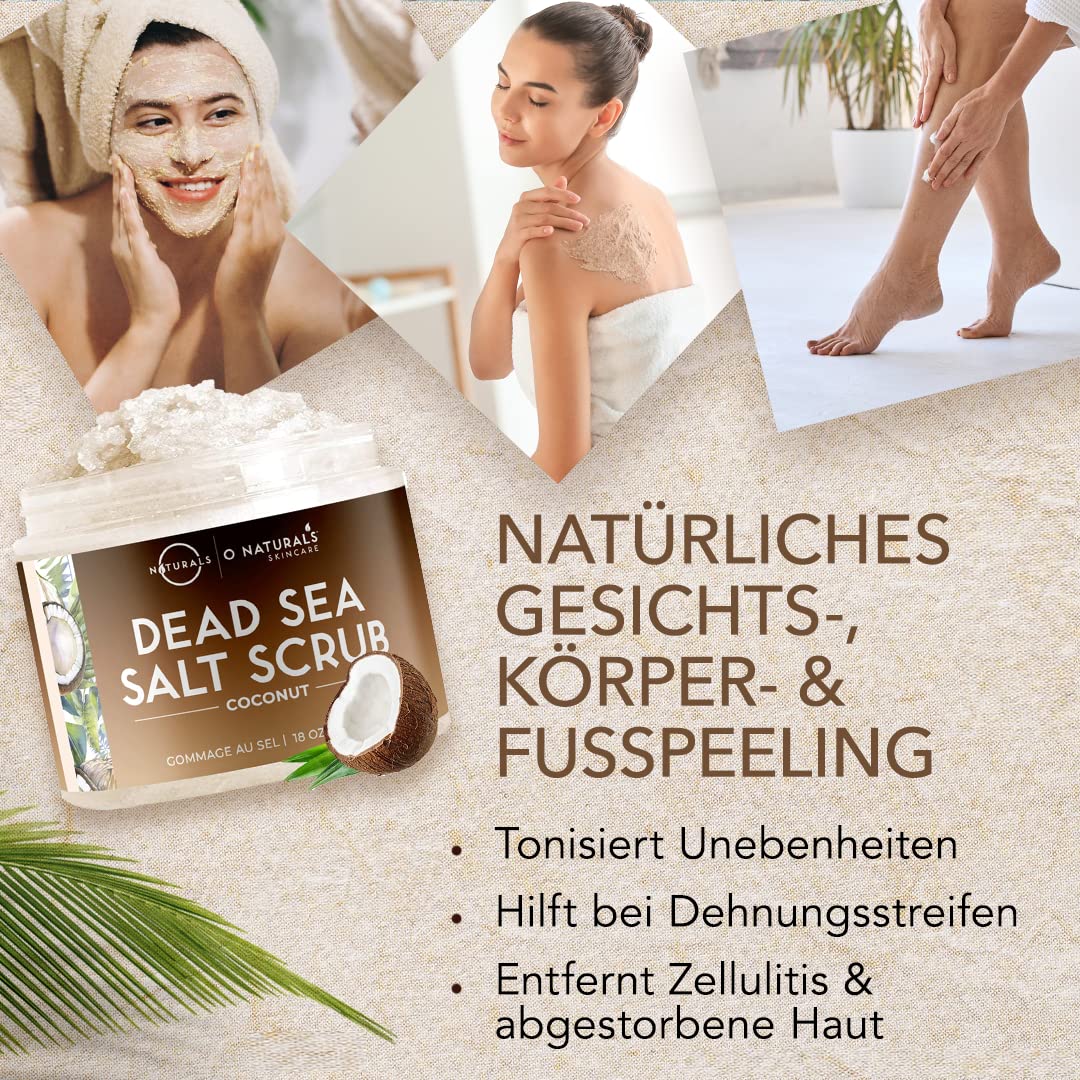 Körperpeeling Salt Body Scrub Coconut & Vanilla – 500g, Feuchtigkeitsspendend, Totes Meer Salz, Für Eingewachsene Haare, Totes Haut Entfernen, Für Frauen und Männer