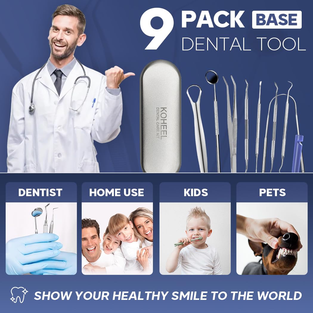 KOHEEL Zahnärztliche Werkzeuge mit Metallkoffer, 8 Stück Zahnreinigungswerkzeuge, Plaque entfernen, Mundhygieneset mit 2 Arten von Zungenschaber, Zahnsteinschaber, Zahnfleischreiniger, Zahnsonde