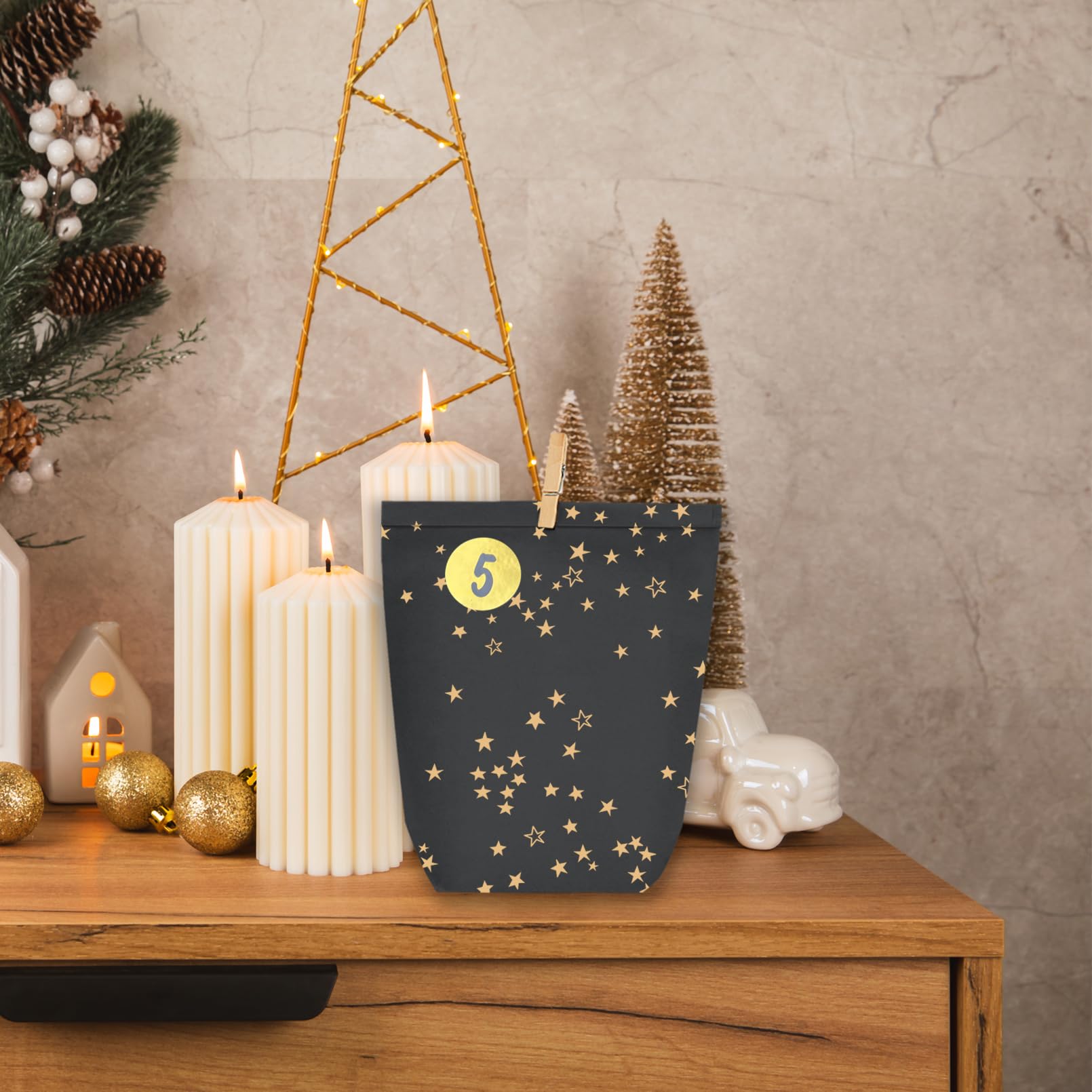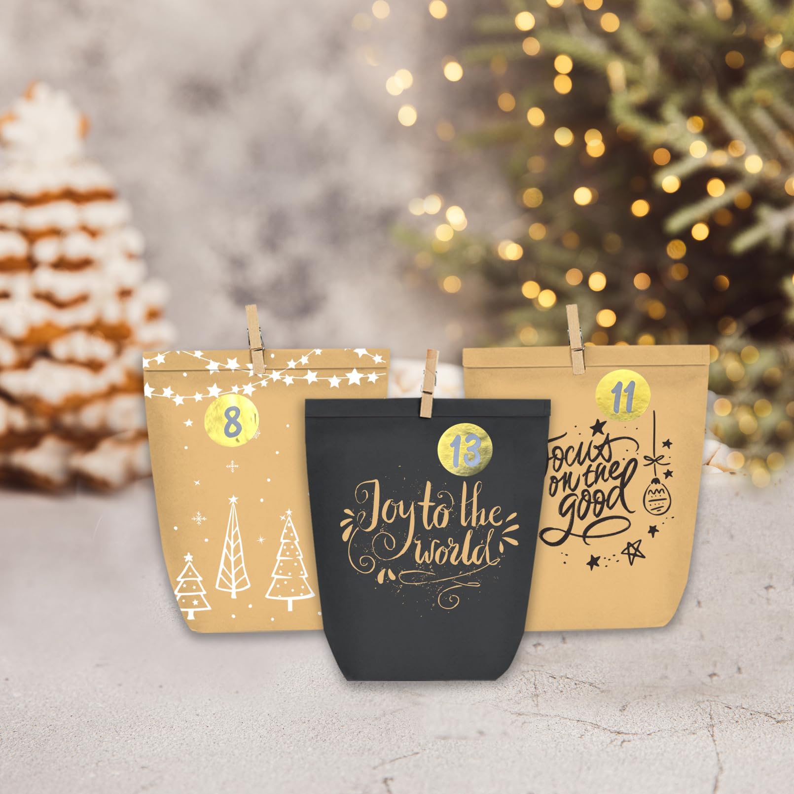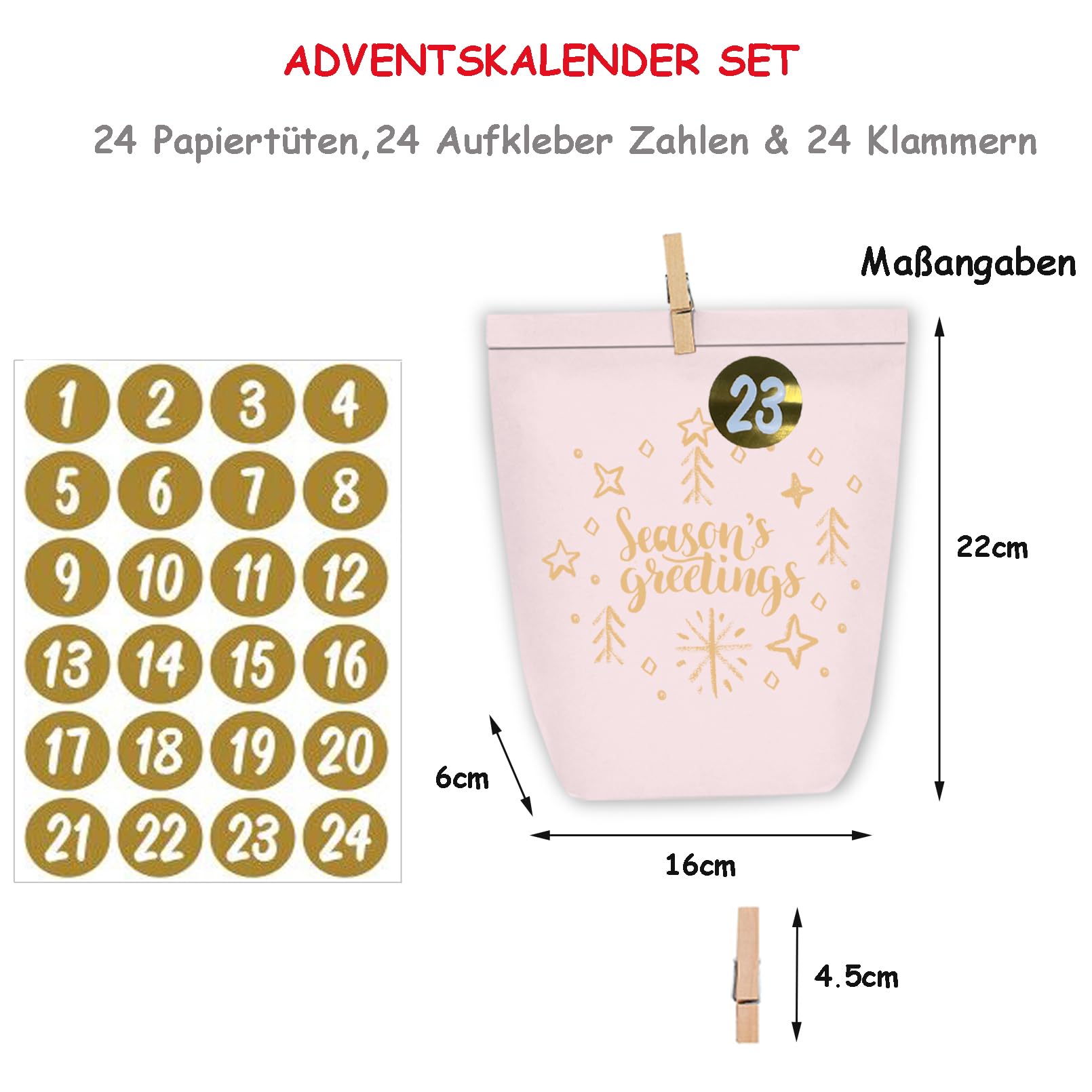 Papiertüte mit Advents Aufklebern zahlen passt perfekt zur Countdown-Funktion erinnerungsfunktion.