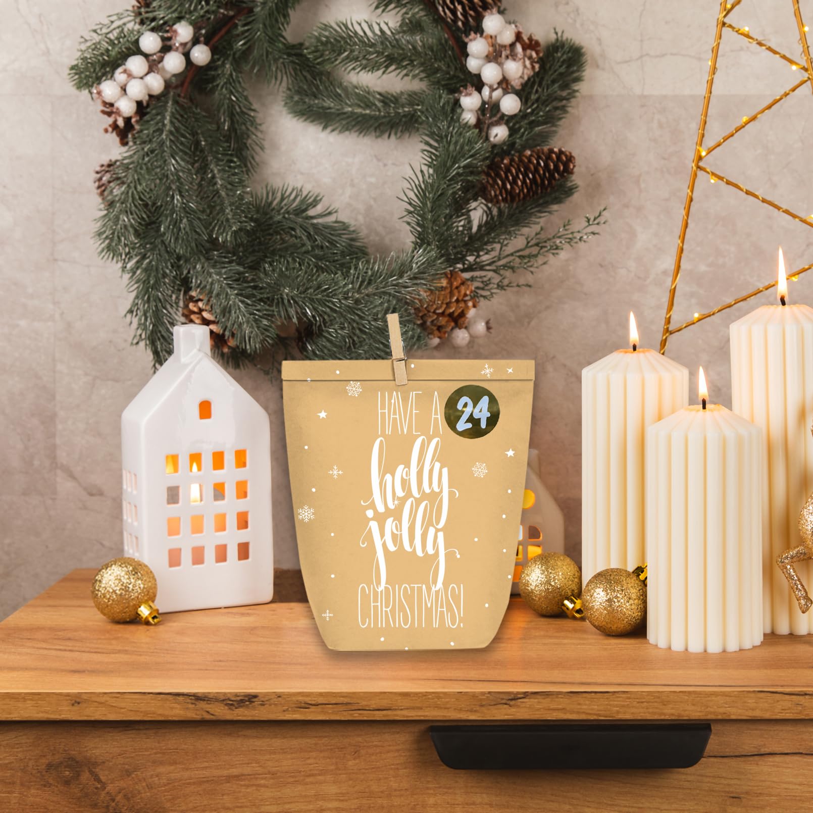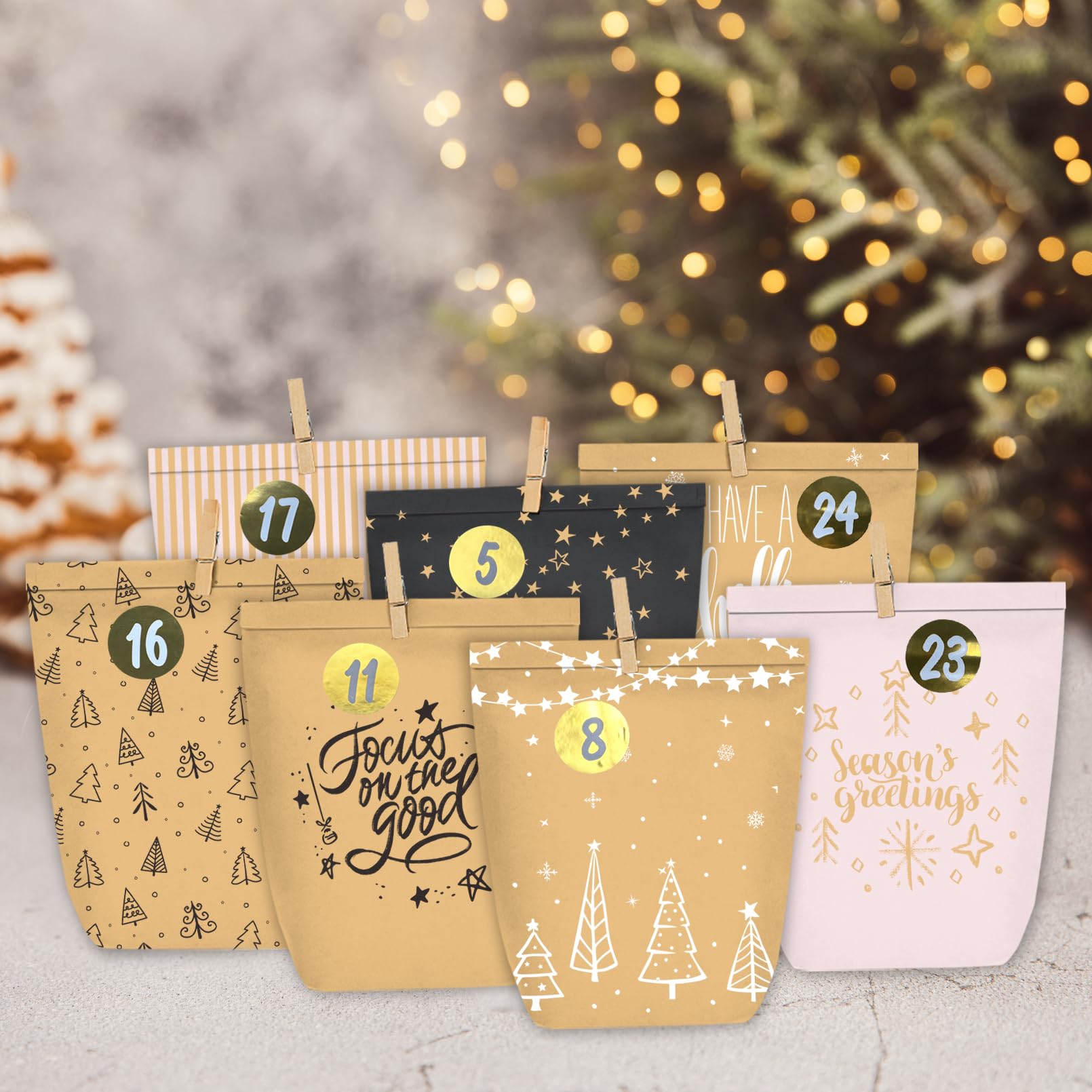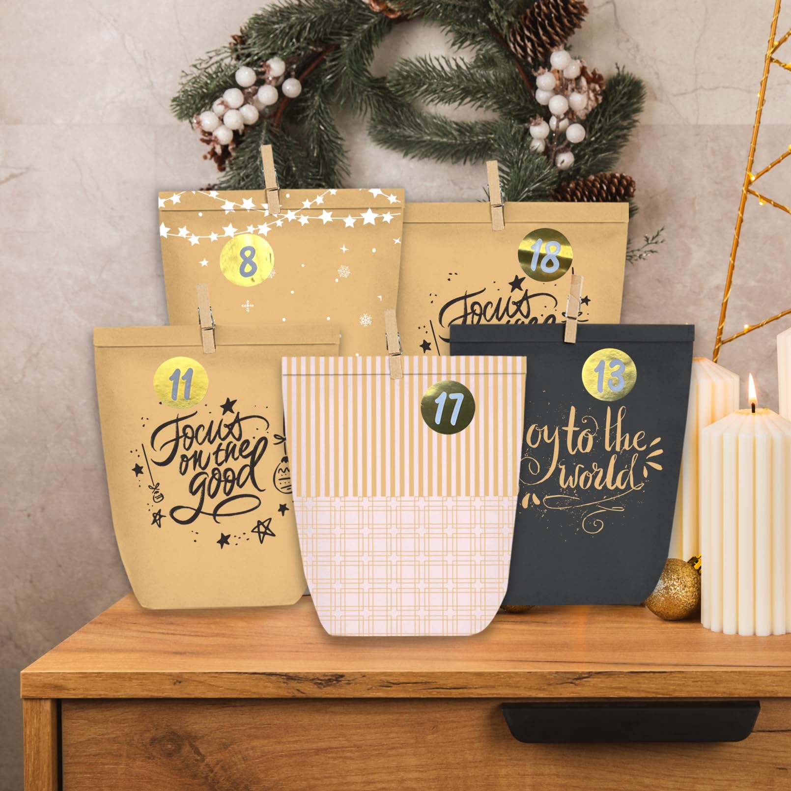 KOHMUI Adventskalender zum Befüllen, 24 Weihnachtskalender Papiertüten mit Zahlen Aufkleber zum Selber Basteln, Geschenktüten Advents Bastelset für Kinder und Erwachsene