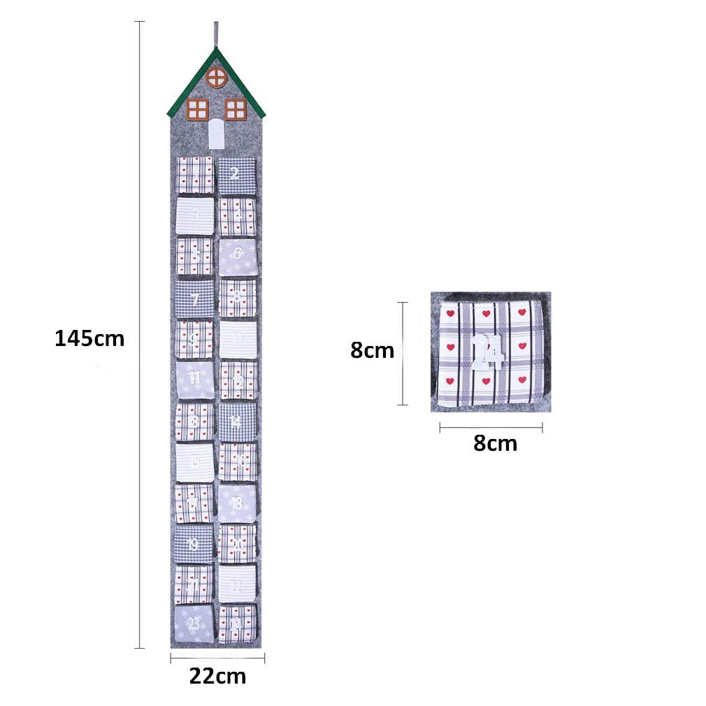 • XXL 145cm Adventskalender. Der Advents-Kalender kann einfach mit einer grauen Schnur als Aufhänger befestigt werden, beispielsweise an Wand oder Tür. Adventssakchen inhalt kalenderzahlen zum aufhängen