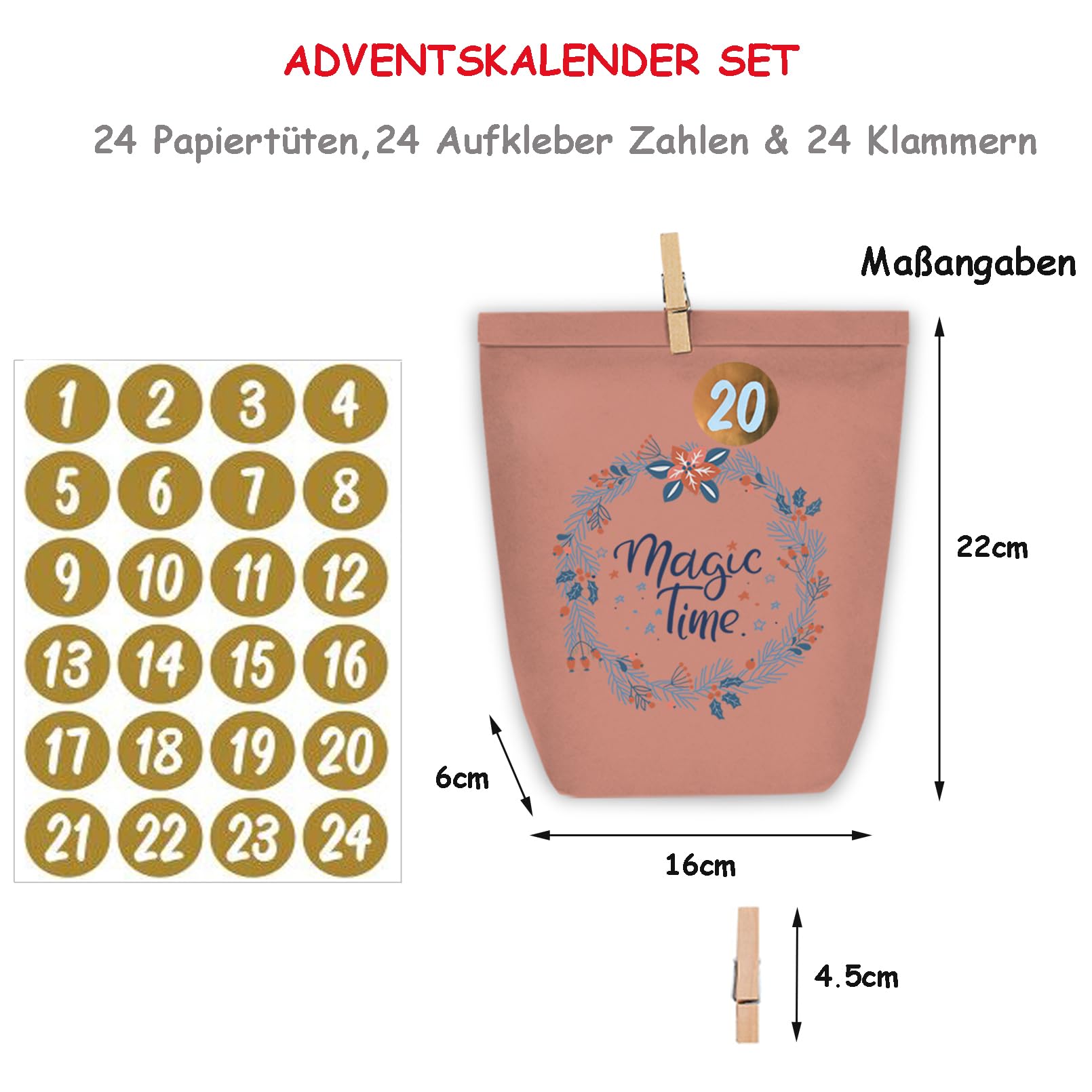 - 24 bedruckte Papiertüten