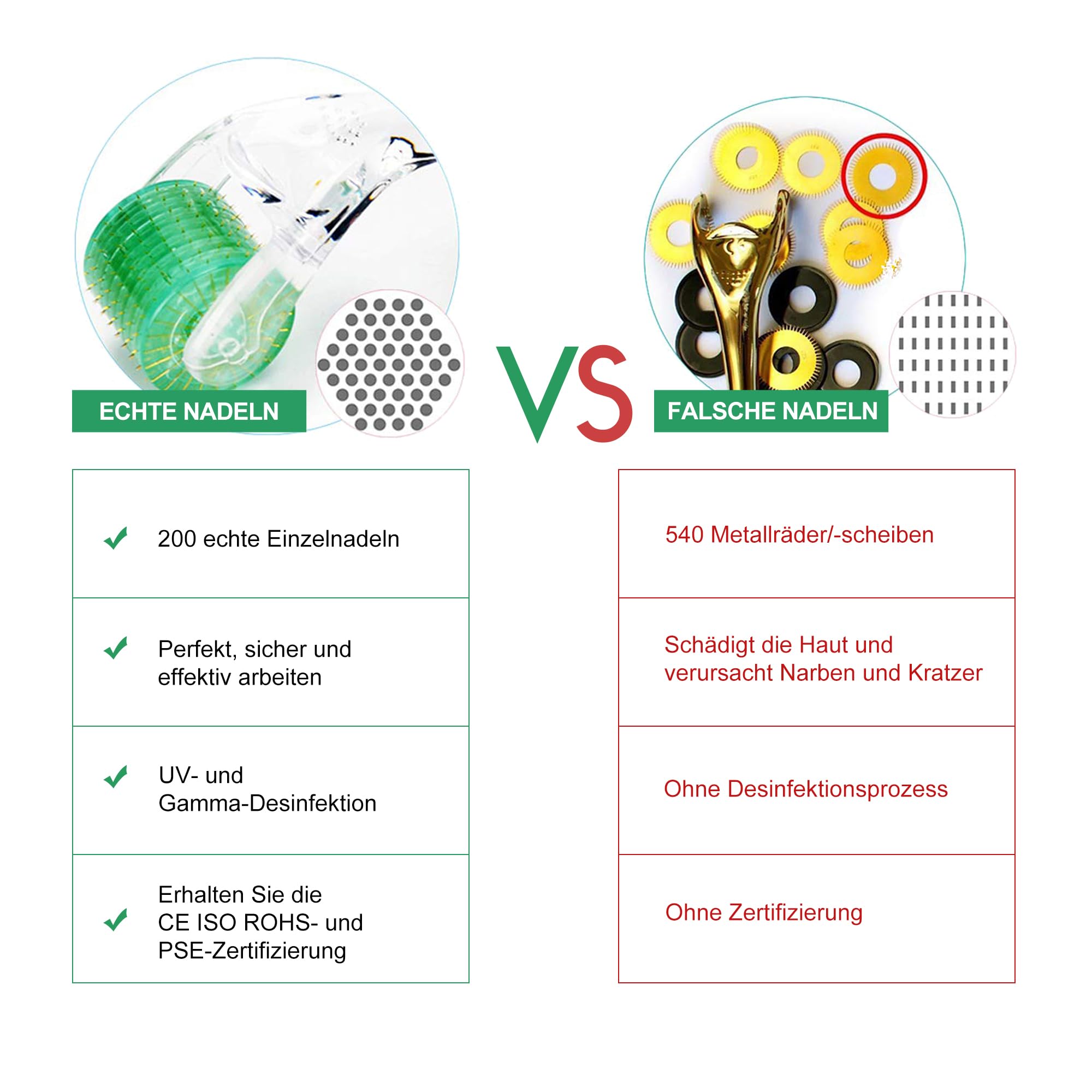 HOCHWERTIGER MICRONEEDLING ROLLER AUS TITAN: 200 echte Titan-Nadeln, UV- und gamma-sterilisiert sowie CE- und ISO-zertifiziert. Schaerfer als Edelstahl, nahezu schmerzfrei und besonders langlebig.