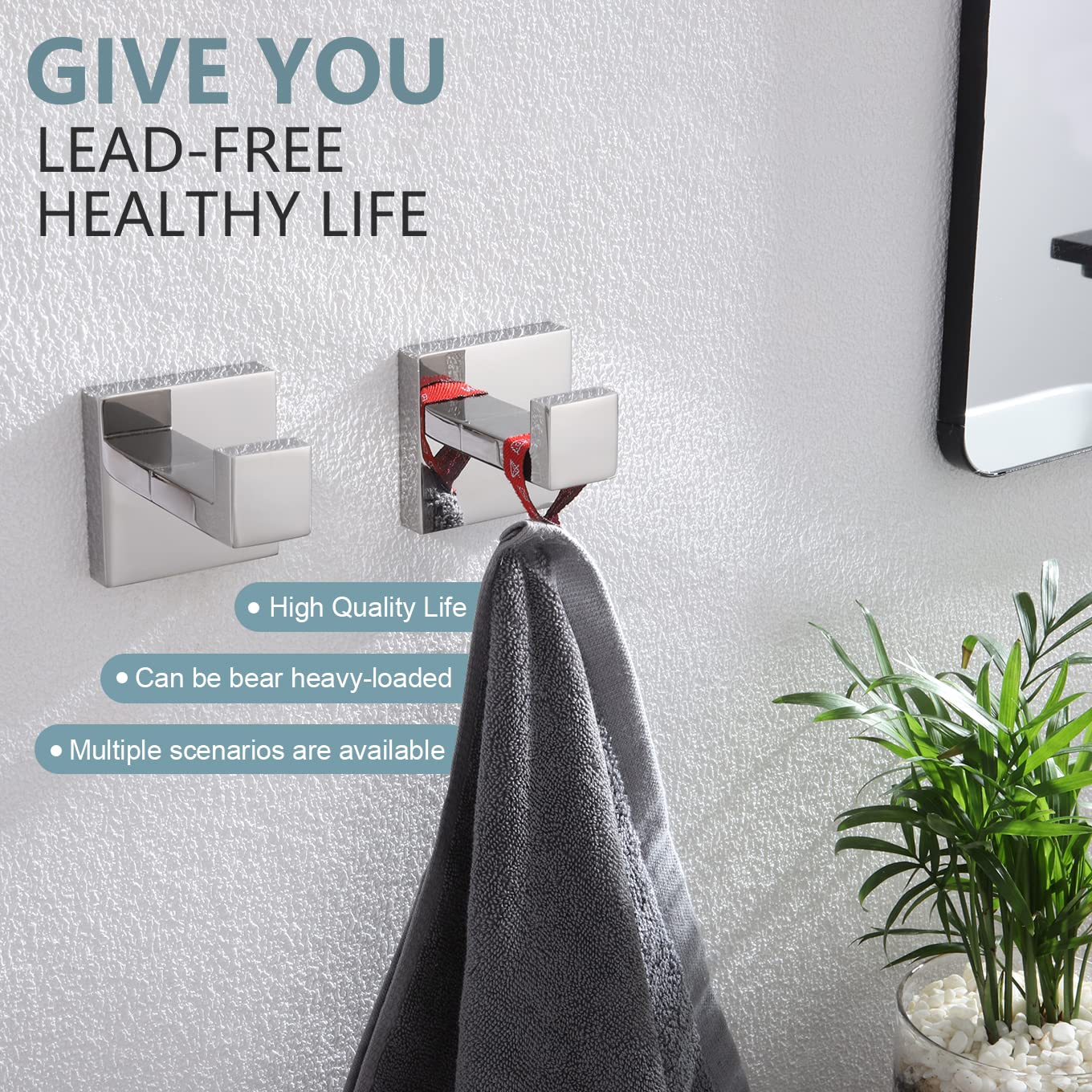 KOKOSIRI B1010CH-P2 Handtuchhaken, Wandhalterung, quadratisch, Kleiderhaken, Badezimmer, Küche, Garage, strapazierfähig, Wandmontage, SUS 304 Edelstahl, poliertes Chrom