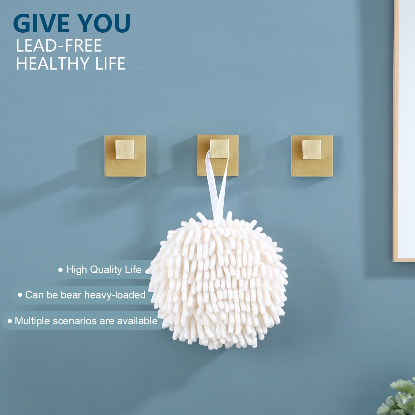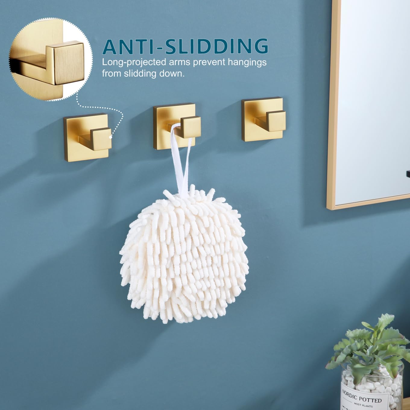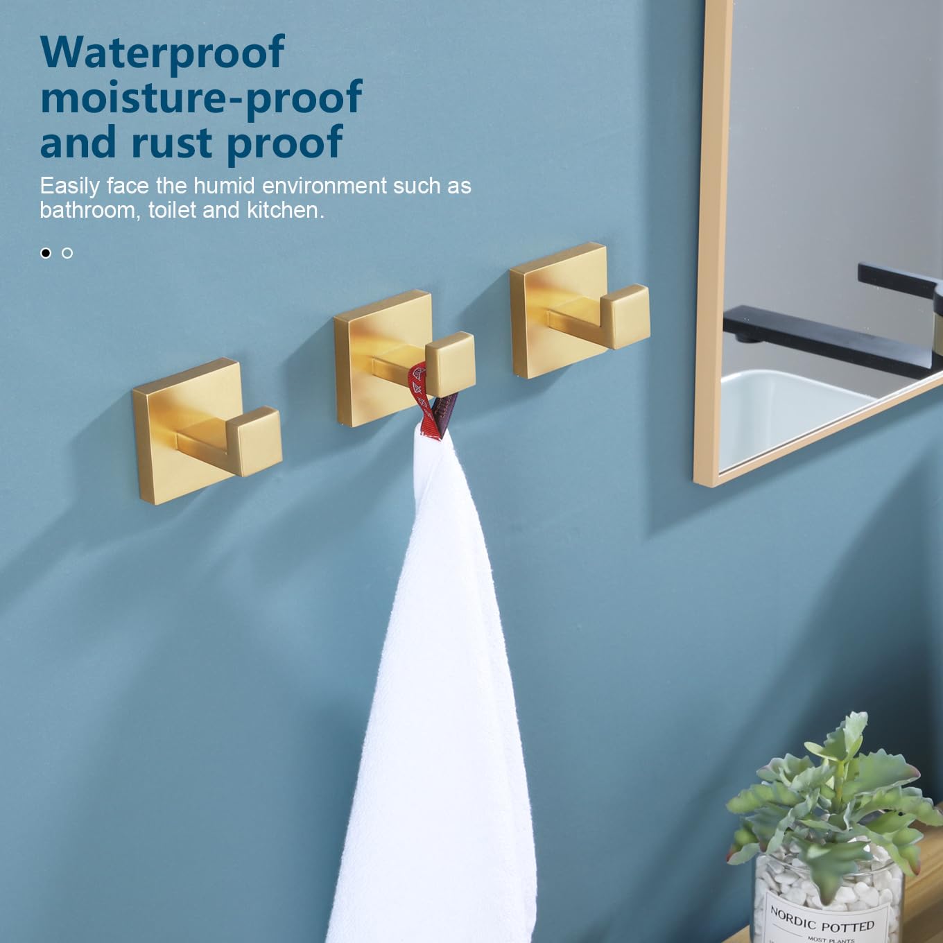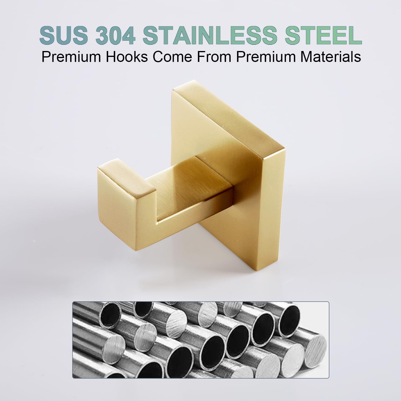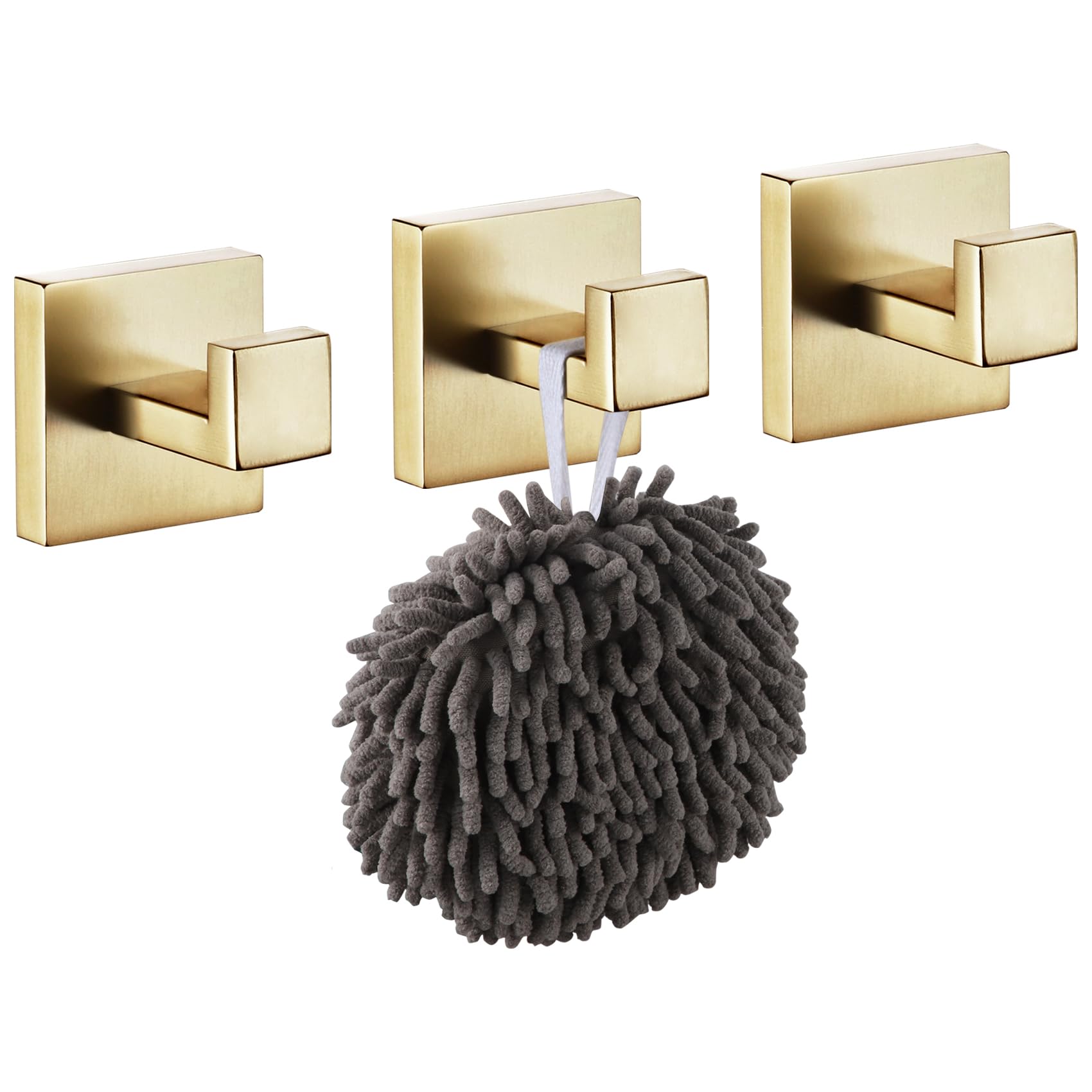 KOKOSIRI Bademantelhaken, Wandhalterung, quadratisch, Handtuchhaken, Kleiderhaken, Badezimmer, Küche, Garage, strapazierfähig, SUS 304 Edelstahl, 3 Stück, gebürstetes Gold, B1010BG-P3