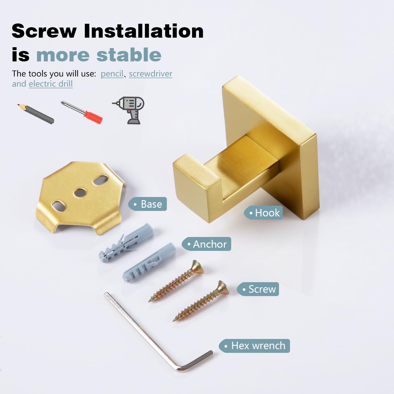 Edelstahl Geeignet für alle Arten von Wänden. Installationsmethode: Wandmontage / Anschrauben. Kleiderhaken Befestigungsmaterial Einbauanleitung von Kosiri Polierte Chromoberfläche, schützt vor Korrosion und Rost. Solides Metallmaterial hält Dinge stabil in 8 kg. Ideal für Badezimmer, Küche, Waschküche, Garage, Schlafzimmer, Tür usw.