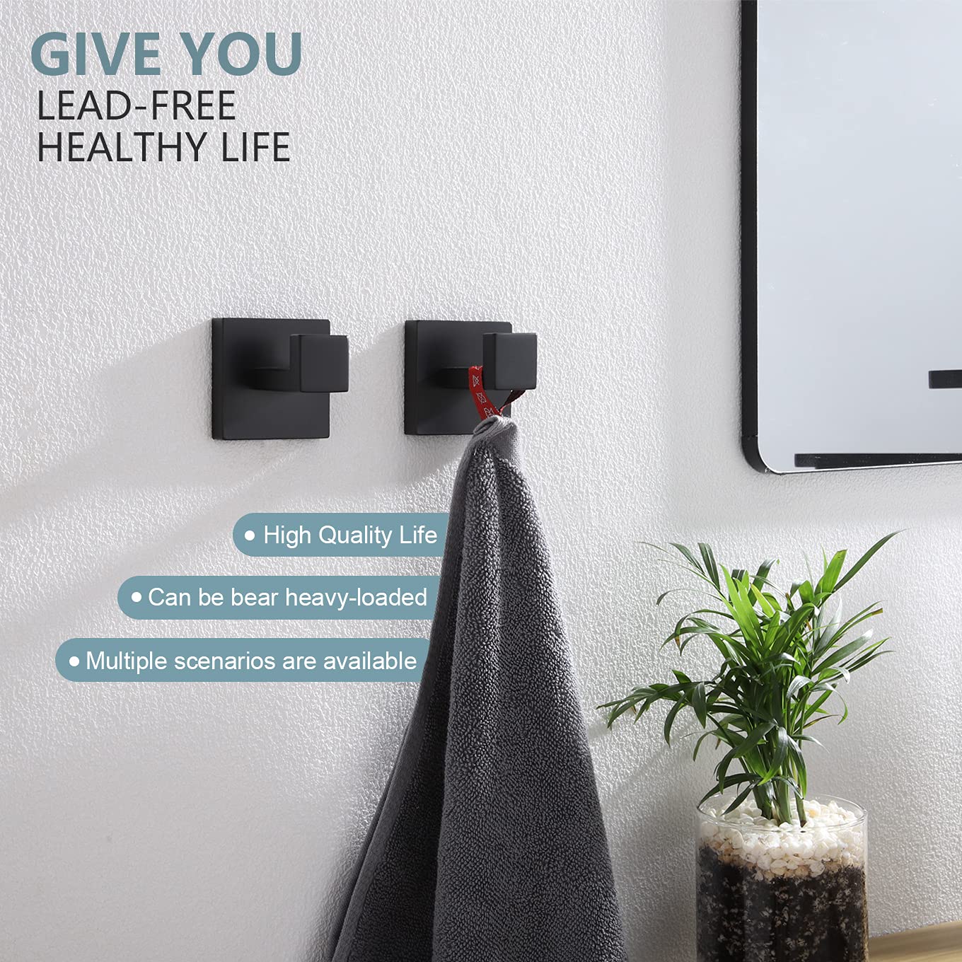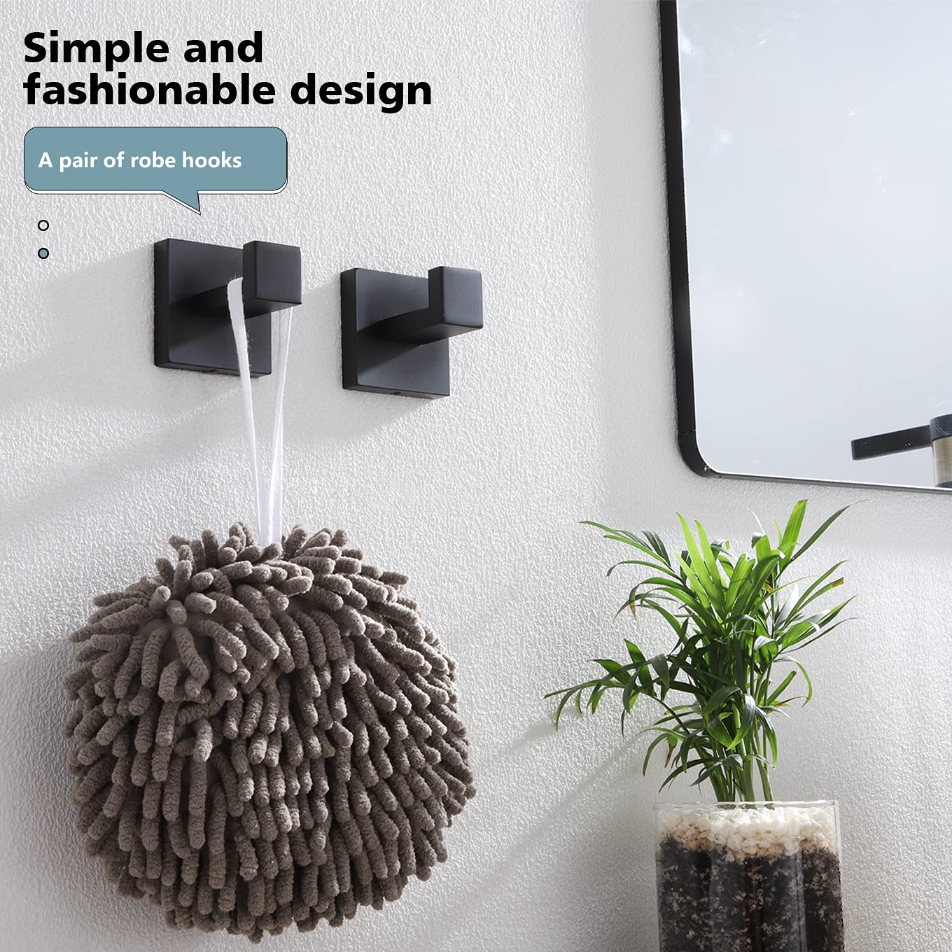 KOKOSIRI B1010BK-P2 Badetuchhaken, Wandhalterung, quadratisch, Kleiderhaken, Badezimmer, Küche, Garage, strapazierfähig, Wandmontage, SUS 304 Edelstahl, mattschwarz, B1010BK-P2
