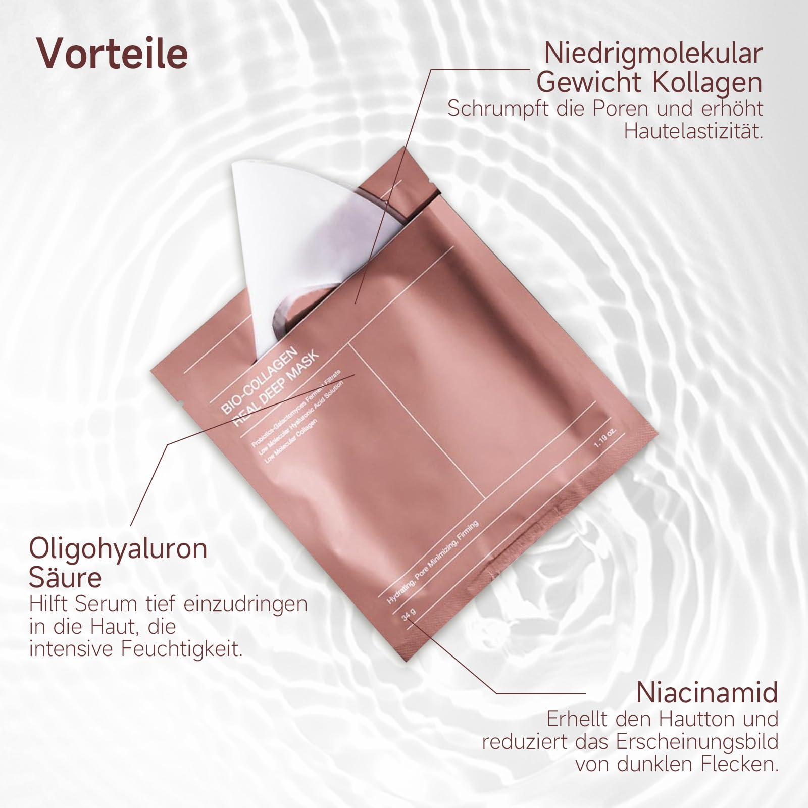 Kollagen Hydrogel Gesichtsmaske – Feuchtigkeit & Straffung fuer alle Hauttypen (5 Stueck)