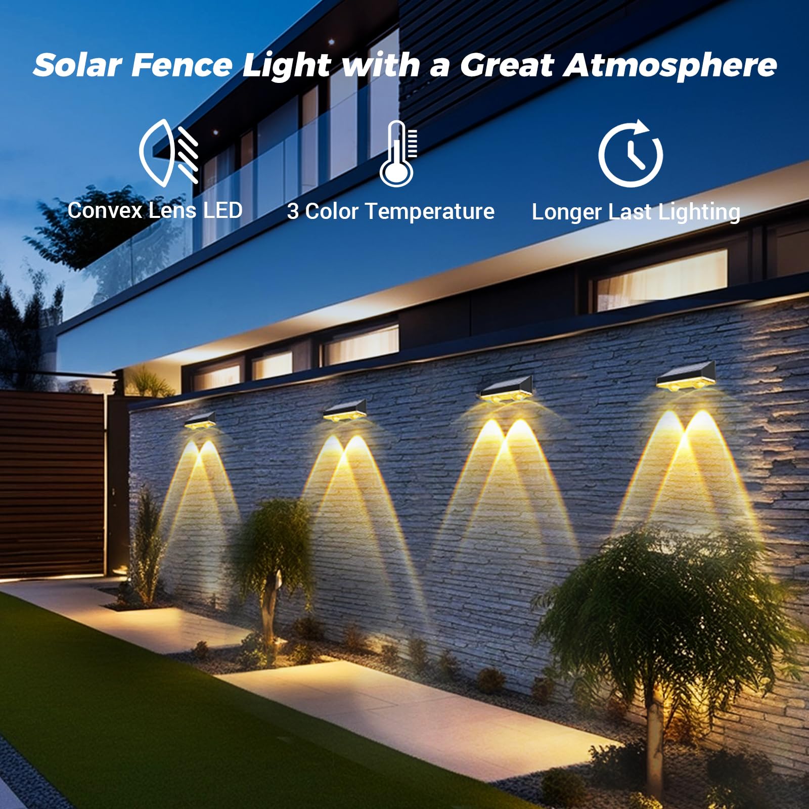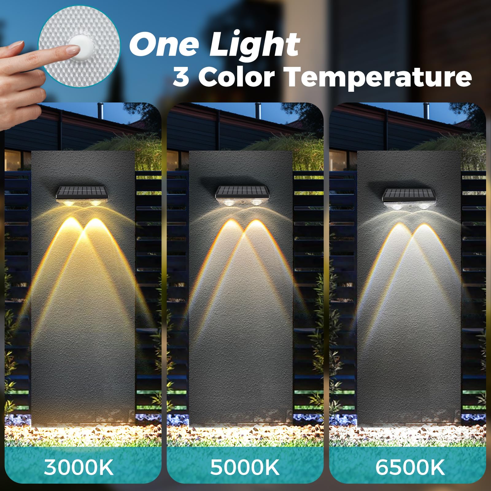- 【3 Farbtemperaturen】Unsere Outdoor-Garten-Solar-Zaunleuchten bieten Ihnen drei 3 Farbtemperaturen 3000/5000/6500K. Ob es für die tägliche Beleuchtung oder Terrassendekoration ist, es kann Ihre Bedürfnisse erfüllen, Sie können den idealen Modus wählen, um eine einzigartige Lichtatmosphäre für Ihre Terrasse, Ihren Garten oder Ihren Zaun zu schaffen