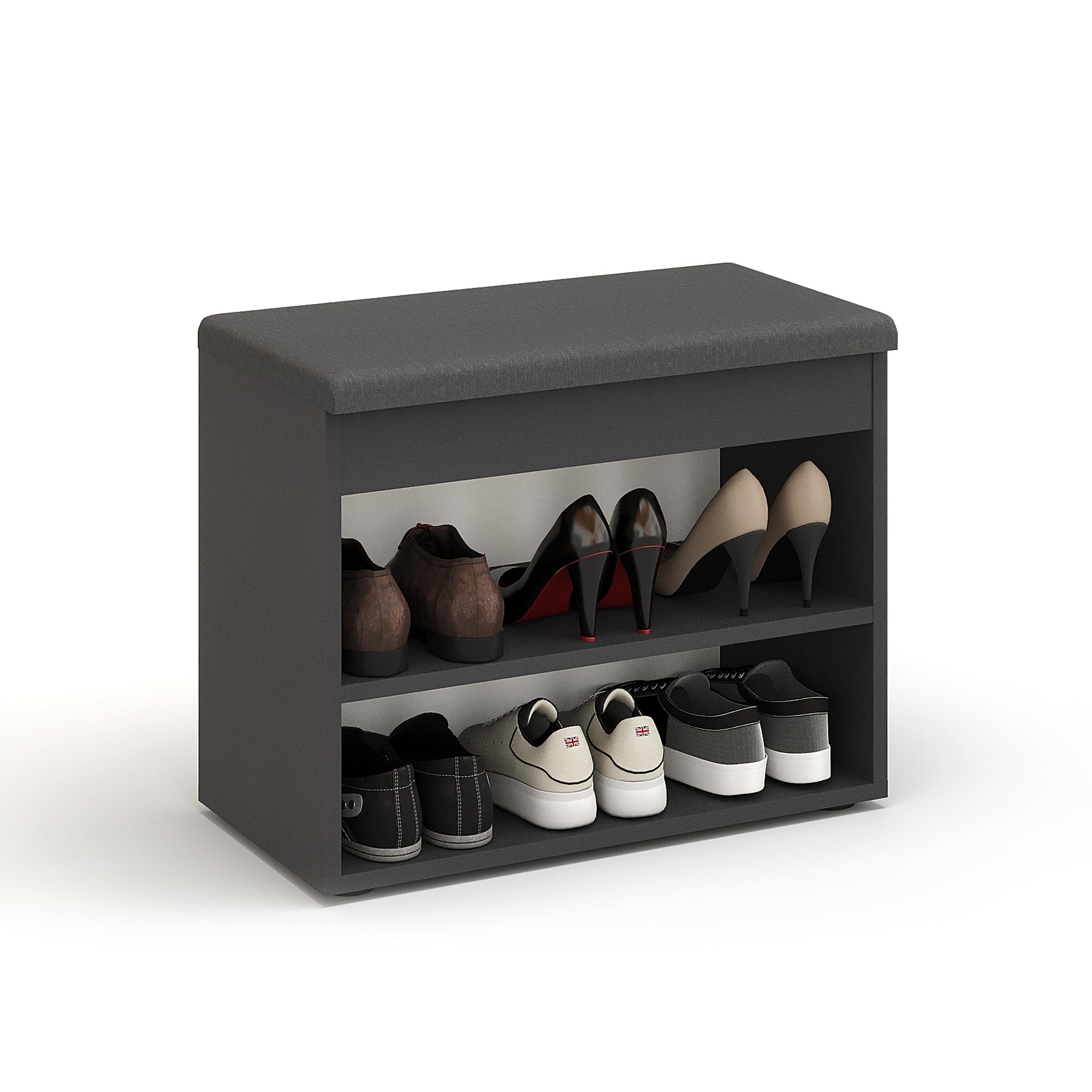 KOMTO Schuhbank mit Sitzfläche - Schuhregal Bank mit Stauraum Schwarz 60 x 48 x 32 cm Kleiner Schuhschrank mit Sitzbank Flur Bank Garderobenbank Sofia