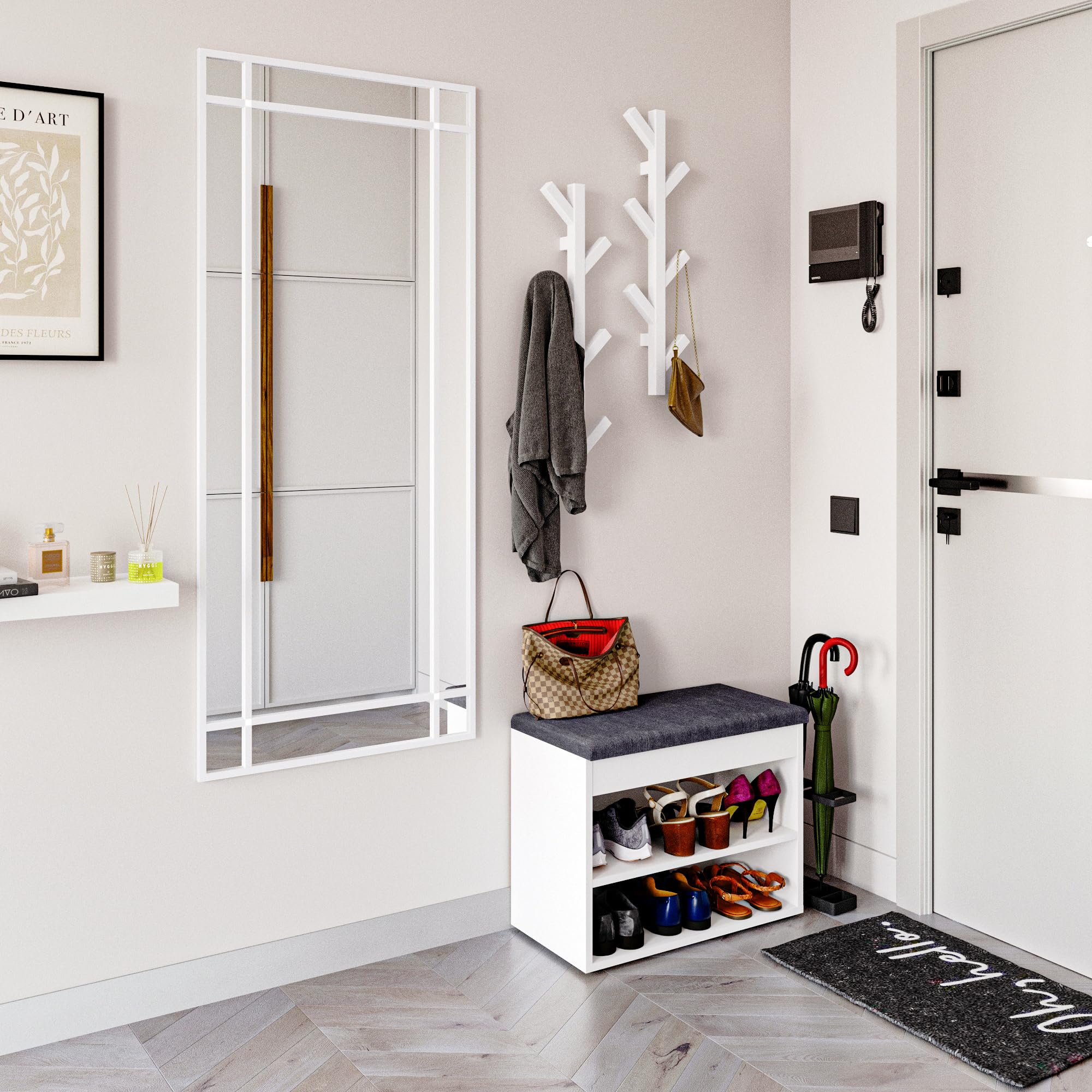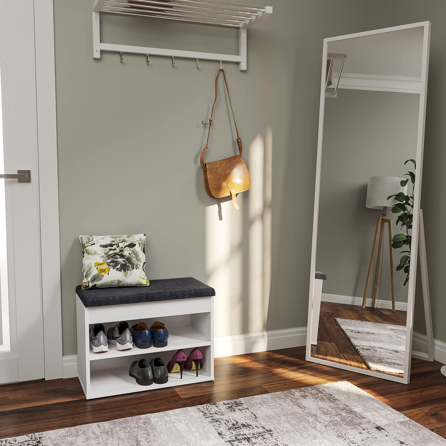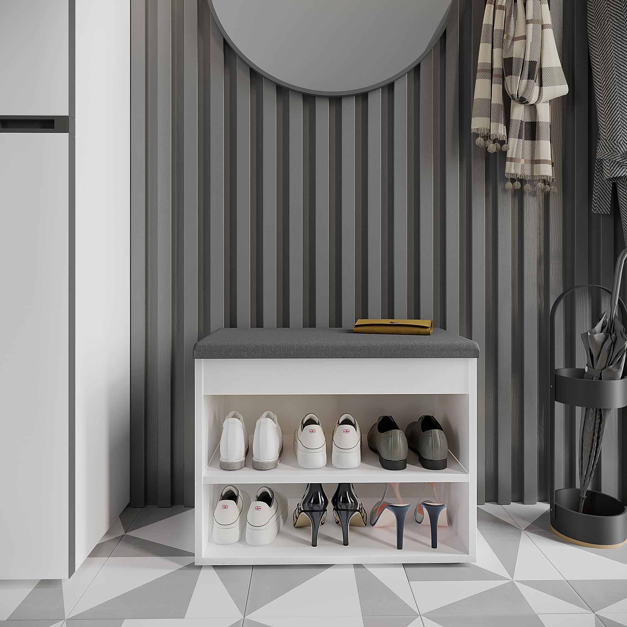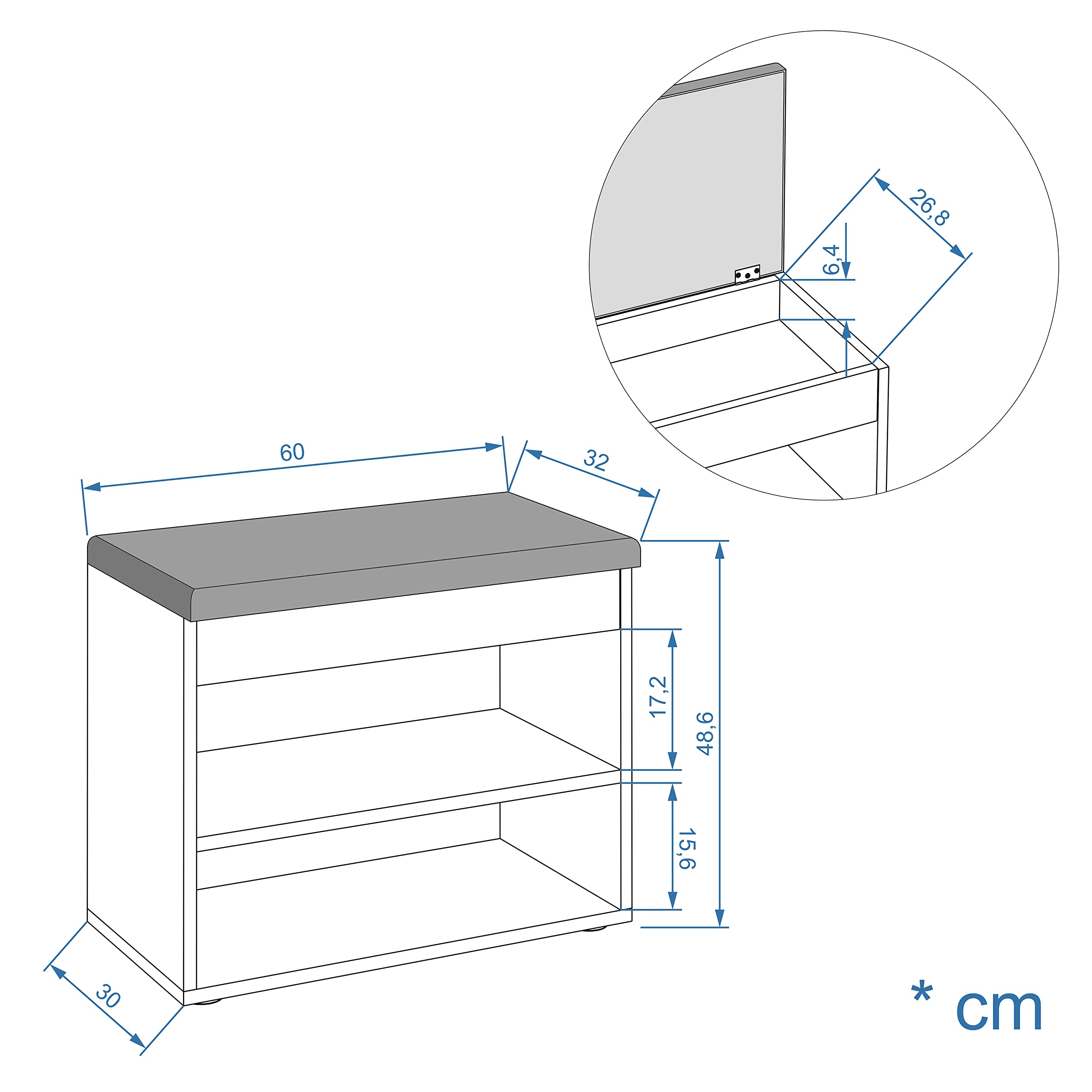 KOMTO Schuhbank mit Sitzfläche - Schuhregal Bank mit Stauraum Weiss 60 x 48 x 32 cm Kleiner Schuhschrank mit Sitzbank Flur Bank Garderobenbank Sofia