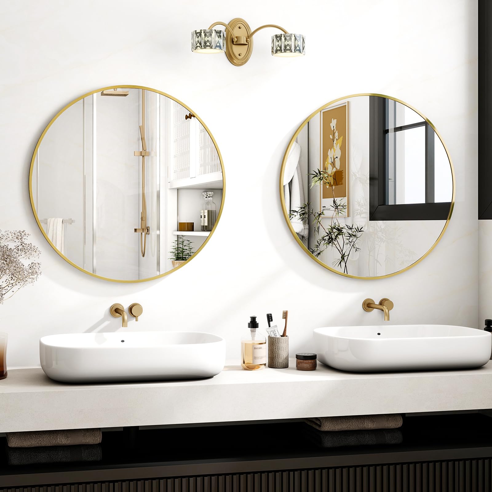 Koonmi 70cm Runder Spiegel Gold Spiegel Rund Wandspiegel mit Rahmen aus Aluminiumlegierung für Badezimmer, Waschtisch, Wohnzimmer, Schlafzimmer, Eingang Wanddekoration