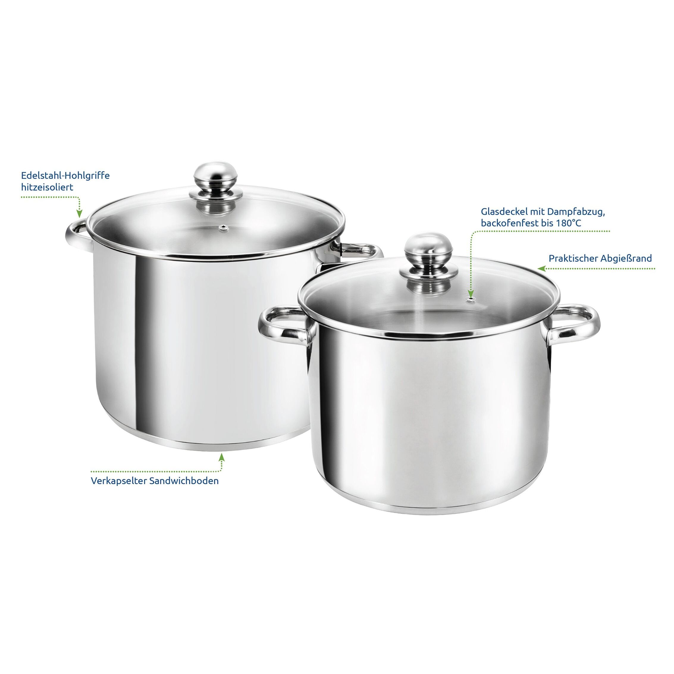 Kopf XXL Kochtopf Grandis Ø 26 cm, geeignet für alle Herdarten inkl. Induktion, 10 Liter Topf aus hochwertigem Edelstahl mit Glasdeckel