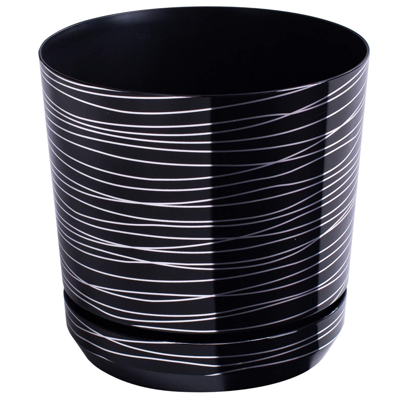 KORAD Blumentopf/Übertopf Schwarz mit Streifen 18 cm - Pflanzkübel aus Hochwertiger Kunststoff - Dekorativer Topf für Pflanzen