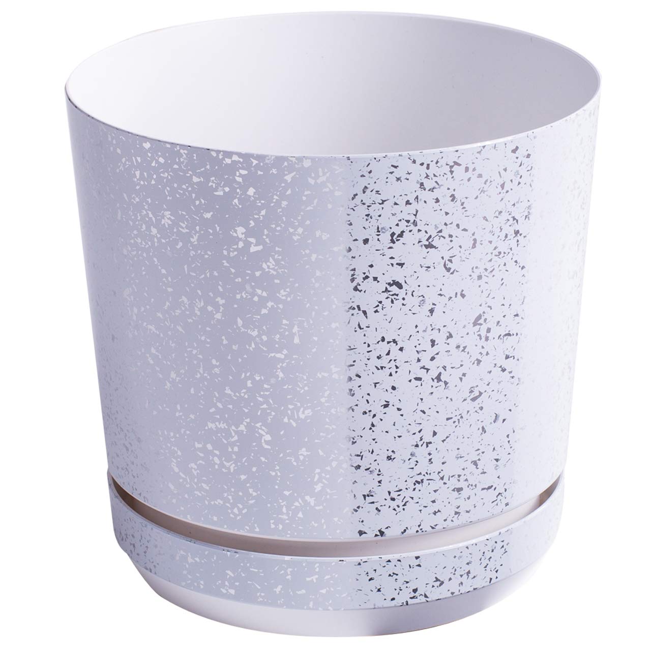KORAD Blumentopf/Übertopf Weisser Marmor 26 cm - Pflanzkübel aus Hochwertiger Kunststoff - Dekorativer Topf für Pflanzen
