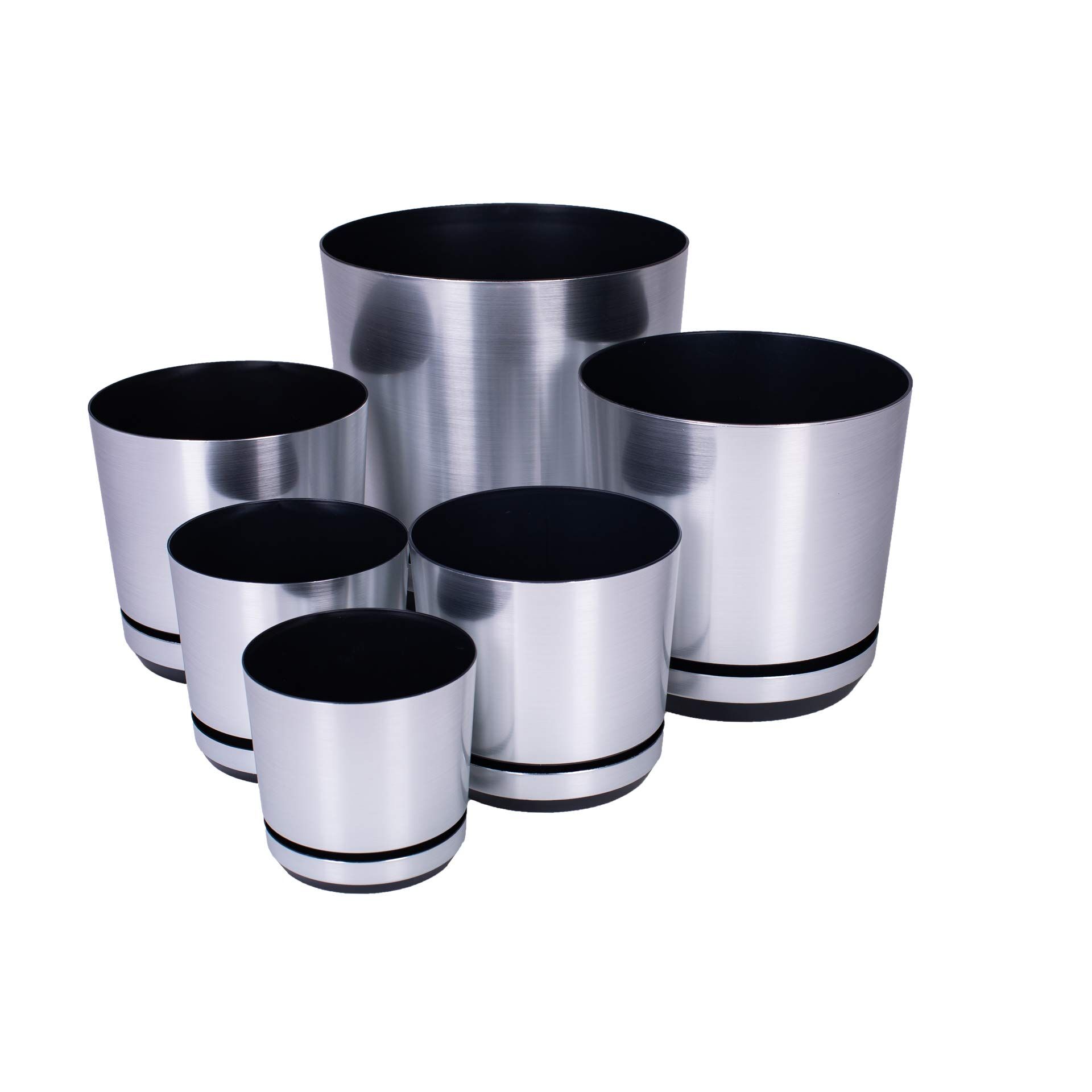 KORAD Blumentopf/Übertopf gebürstetes Aluminium 16 cm - Pflanzkübel aus Hochwertiger Kunststoff - Dekorativer Topf für Pflanzen