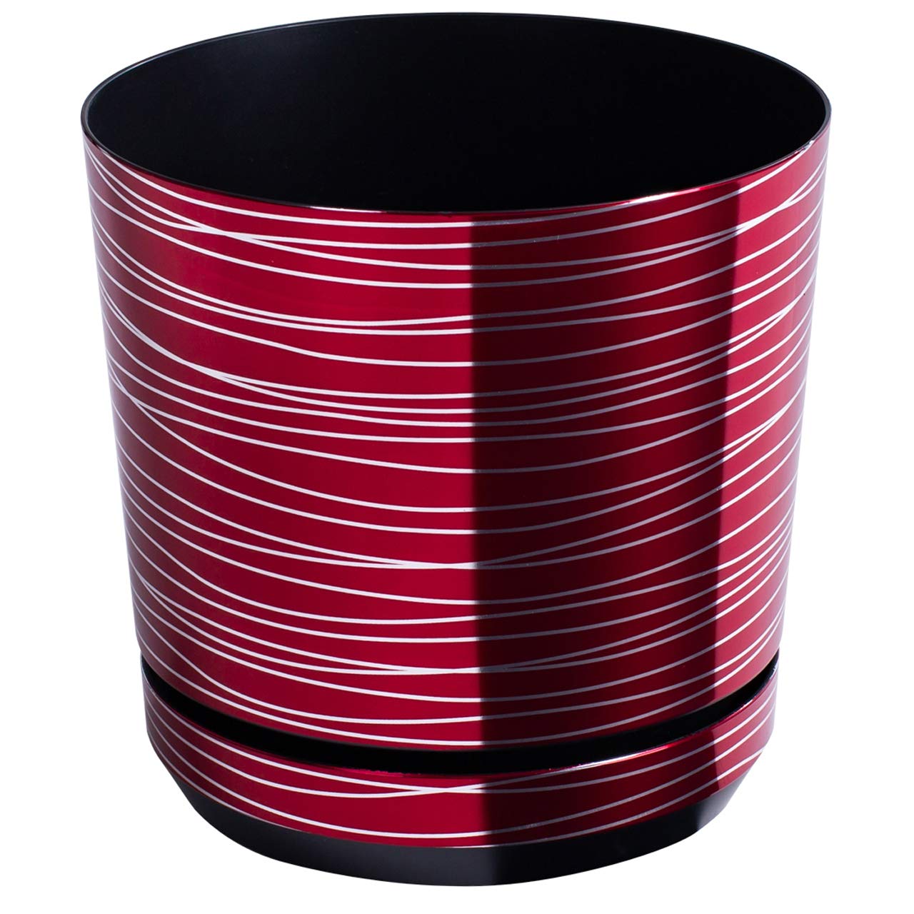 KORAD Blumentopf/Übertopf Rot mit Streifen 21 cm - Pflanzkübel aus Hochwertiger Kunststoff - Dekorativer Topf für Pflanzen