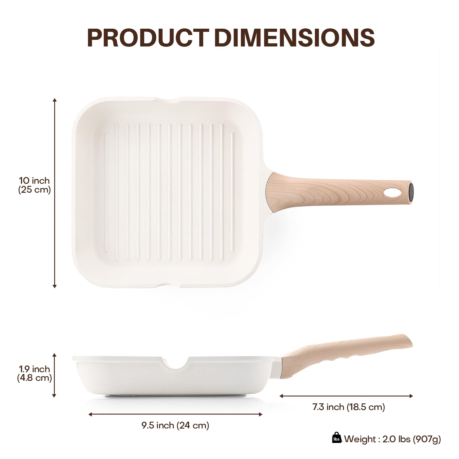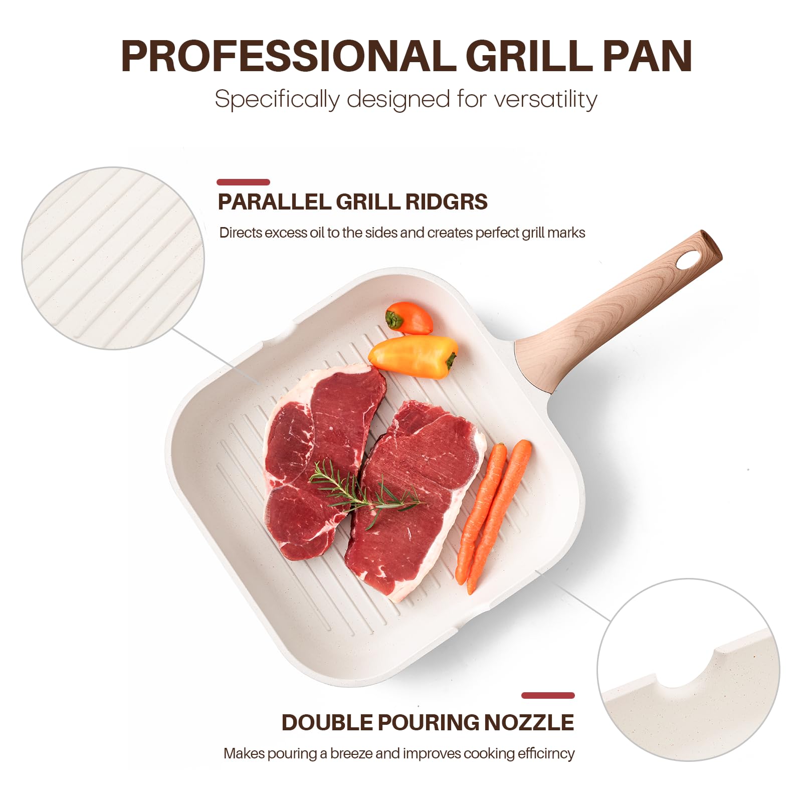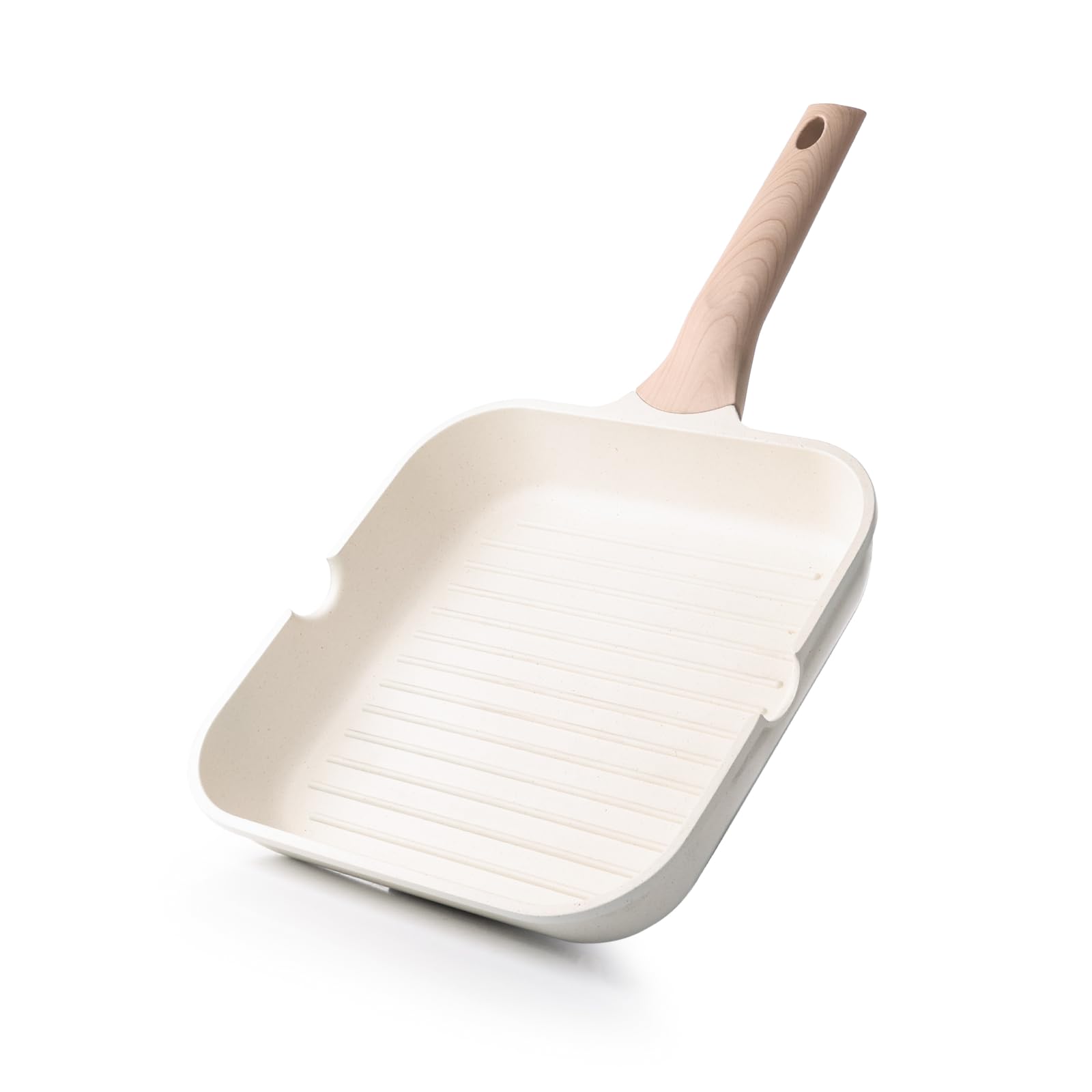 Kordisen Antihaftbeschichtete Grillpfanne für Herdplatten, 24 cm, quadratische Grillpfanne für Innenräume, Induktions-/Steakpfanne mit Ausgiessern, vielseitige Grillplatte, PFOA-frei, Weiss