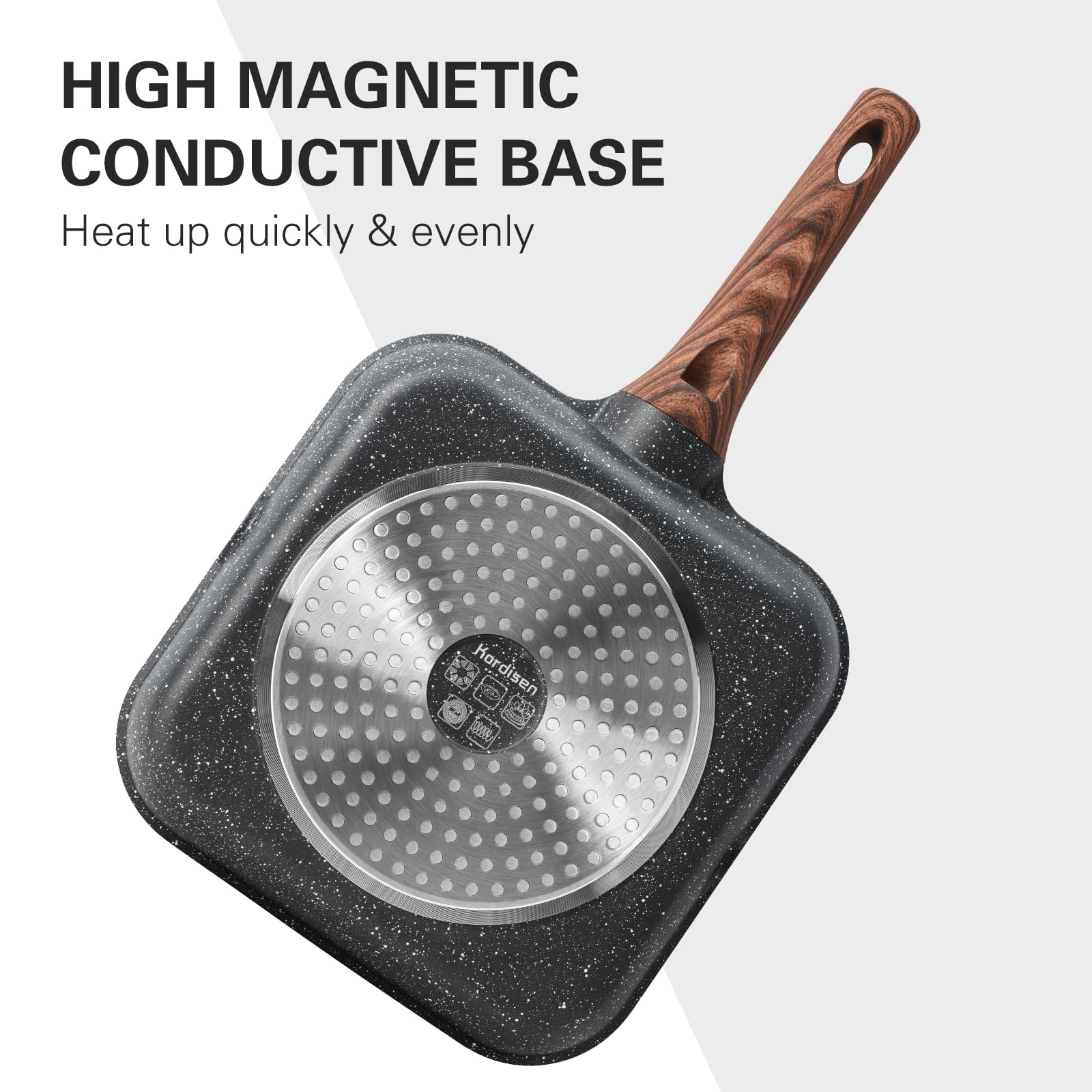 Kordisen Grillpfanne Induktion 28 cm mit Deckel – Grillpfanne mit Ausguss & Steakpfanne quadratisch, Granit Antihaftbeschichtung, für alle Herdarten, PFOA-frei