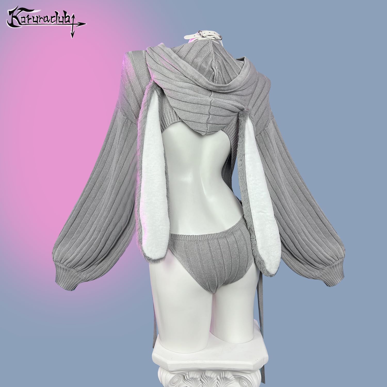 KORURACLUB Cosplay Sexy Bunny Outfit Grau Cosplay Dessous für Damen Tierkostüme Bunny Bodysuit (XS-M)