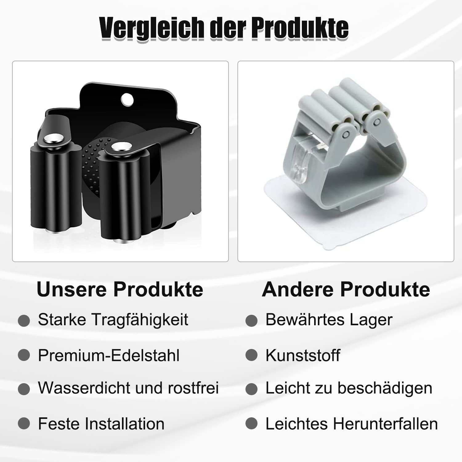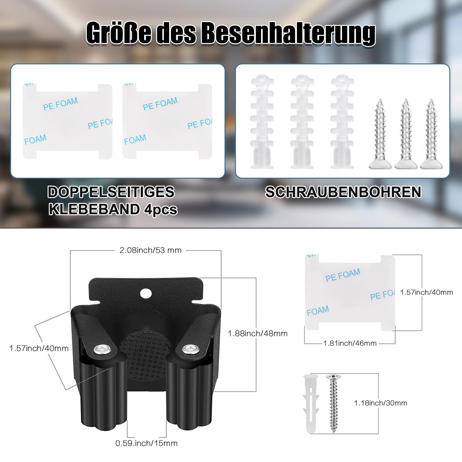 Kouclaa Besenhalterung Wand,Gerätehalter Edelstahl Gartengerätehalter Wandhalterung Selbstklebend Besenhalter Organizer für Küche Zuhause Badezimmer Garage (4 Black)