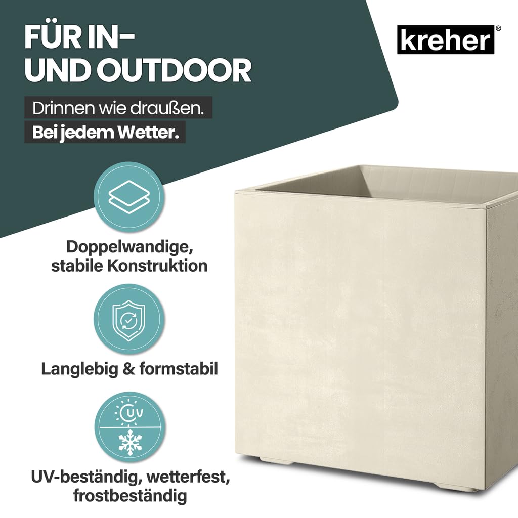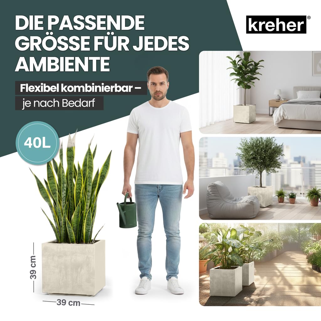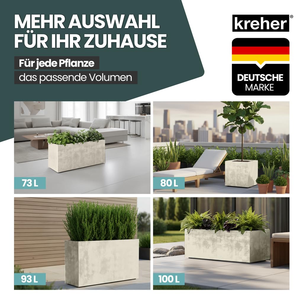 Die Pflanzkästen sind in verschiedenen Farben und Grössenausführungen erhältlich und sind durch ihre Naturstein-Optik ein schöner Eye-Catcher. In der massiven, doppelwandigen Ausführung steht er sicher und kompakt und kann sowohl Hitze als auch Frost gut vertragen.
