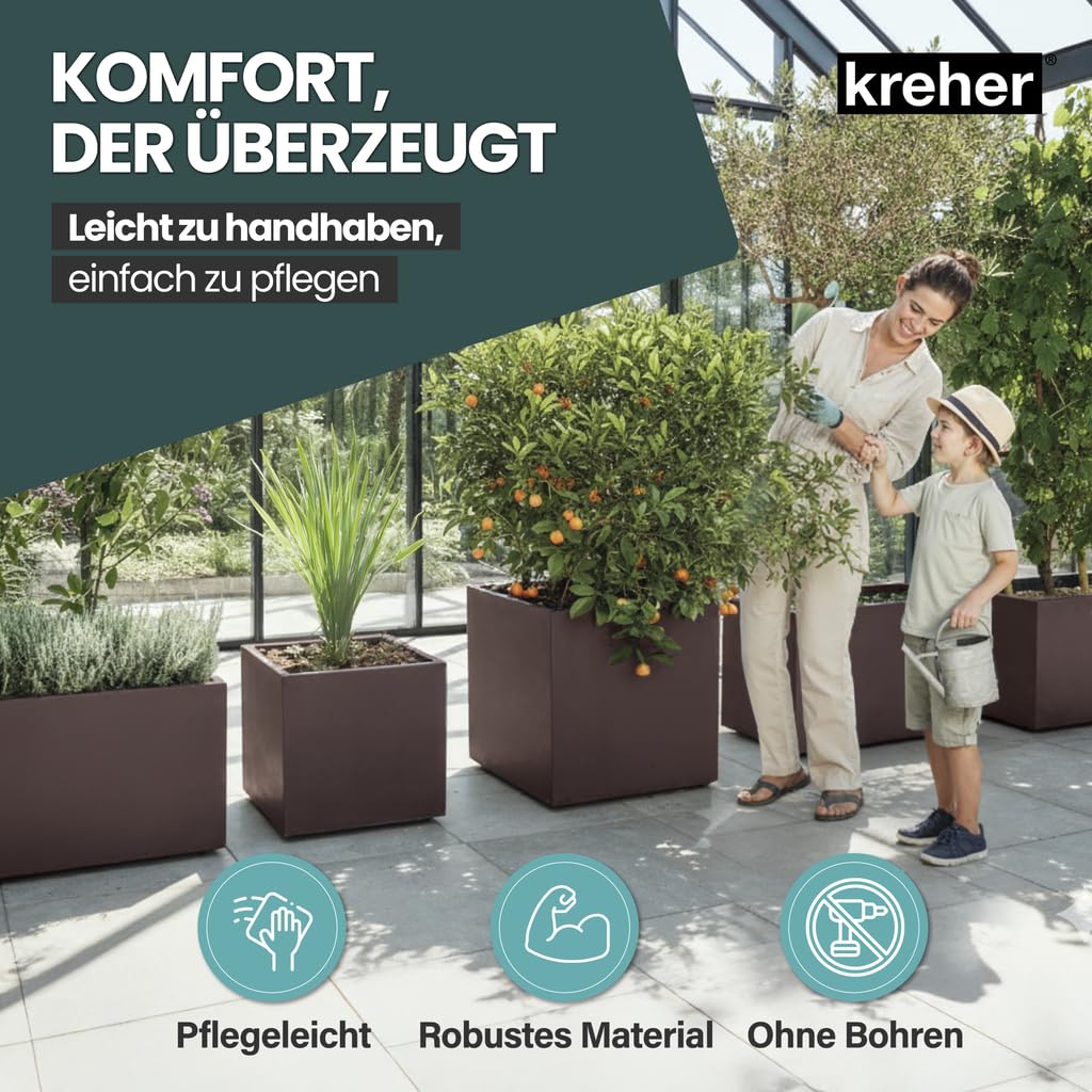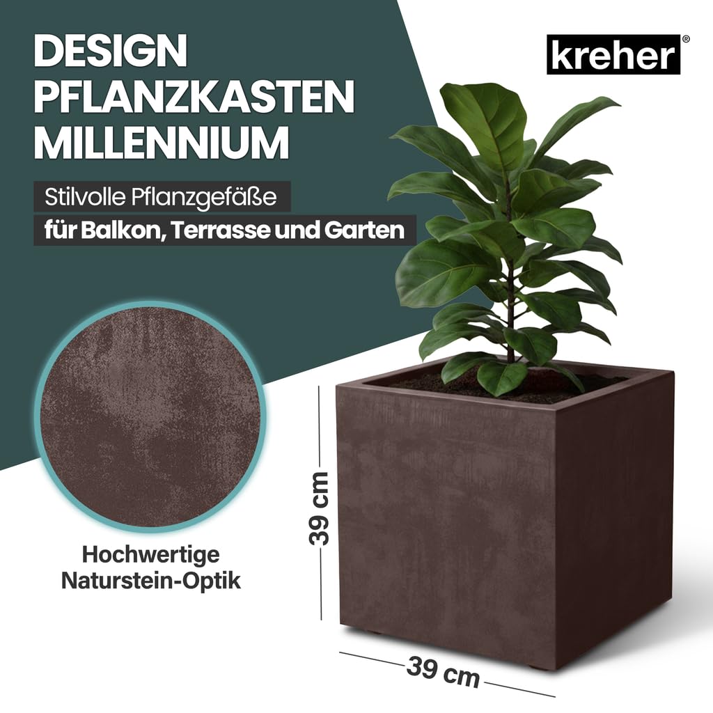 Ein absolutes Highlight für Innen- und Aussenbereiche sind die Pflanzkästen aus der Serie "Millennium" in Braun, Anthrazit oder Grau von KREHER.