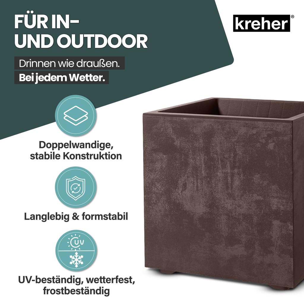 Kreher XL Pflanzkasten Millennium in verschiedenen Formaten und Farben. Tolle Naturstein Optik in Braun, Beige, Anthrazit oder Grau! Aus robustem Kunststoff! (80 Liter Braun)