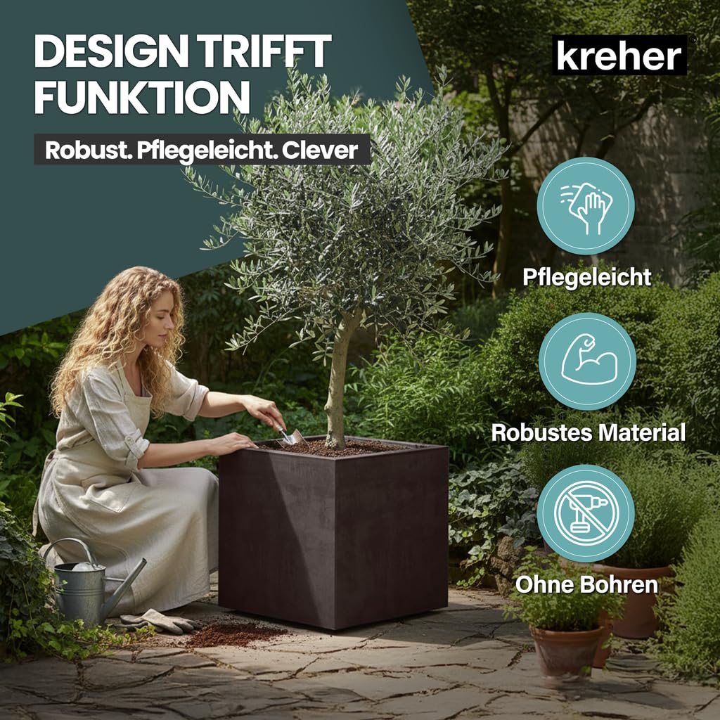 Ein absolutes Highlight für Innen- und Aussenbereiche sind die Pflanzkästen aus der Serie "Millennium" in Braun, Anthrazit oder Grau von KREHER.