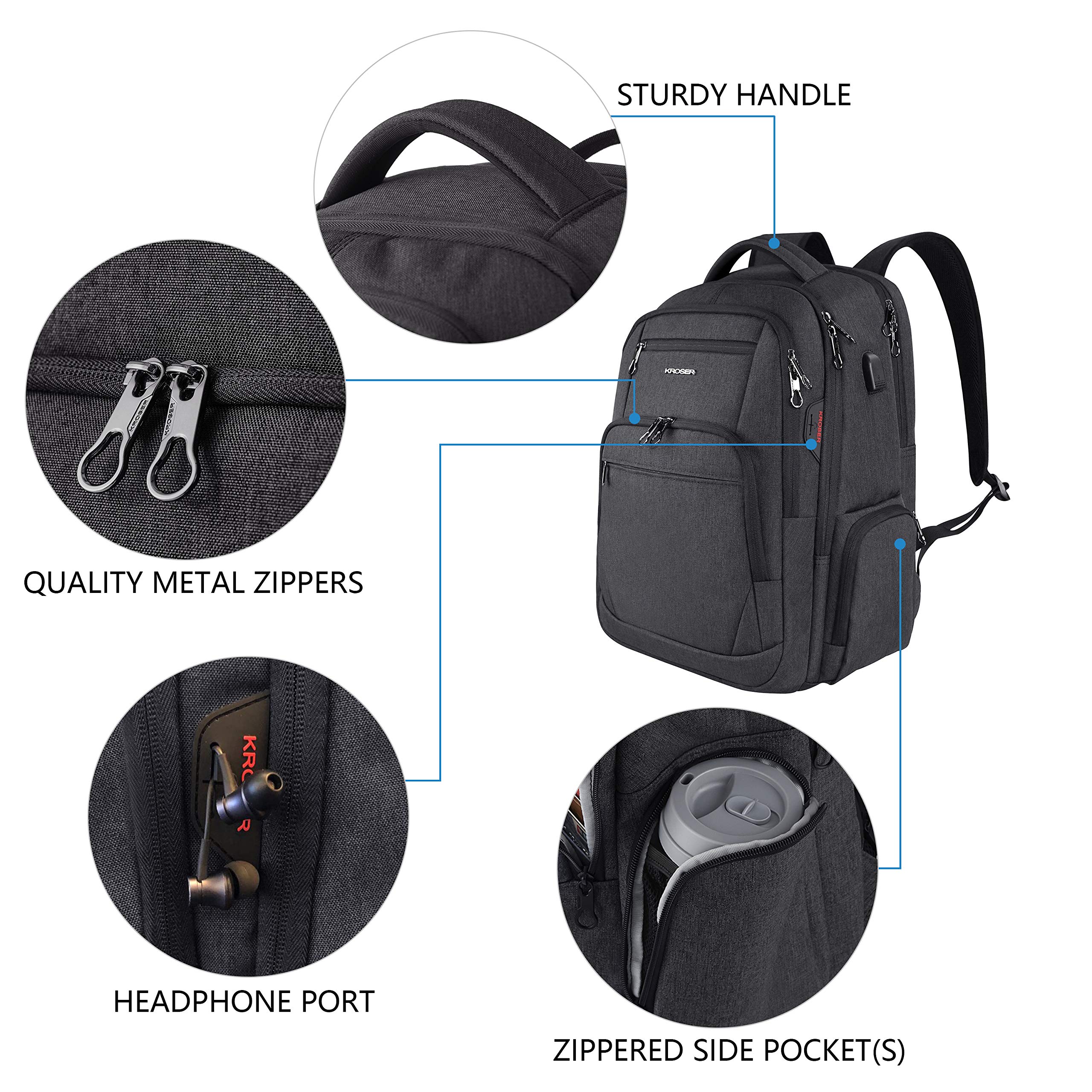KROSER Laptop Rucksack 17,3'' Business Rucksack Schulrucksack Grosser Wasserdicht Taschen Reise Backpack Daypack Mit USB und RFID-Taschen für Herren/College/Männer/Frauen