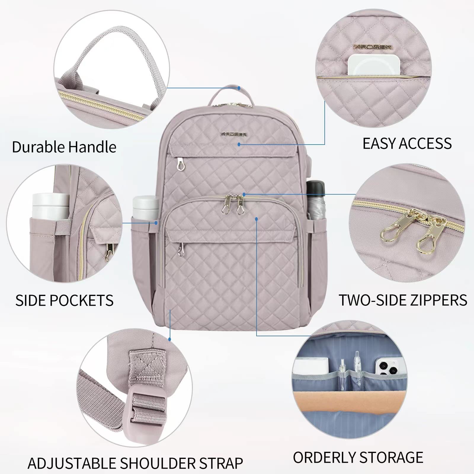 KROSER Rucksack Damen für Schule Laptop Rucksack 15,6 Zoll Schulrucksack Daypack Wasserdichte mit USB-Ladeanschluss Tablet für Universität/Reisen/Business/Arbeit Frauen/Männer