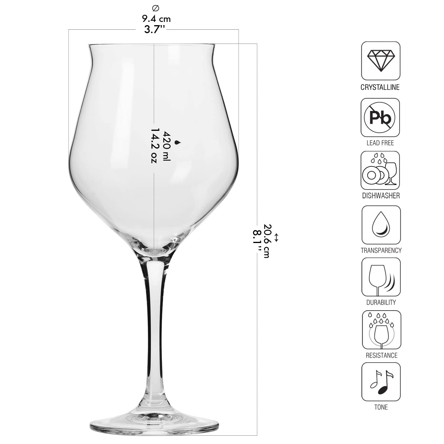 Spezifikation eines Probierglases für Bier aus der Avant-Garde Kollektion:Volumen: 420 MLHöhe: 206 mmDurchmesser: 94 mmStückzahl pro Set: 6Farbe: farblos Die Avant-Garde Linie zeichnet sich durch Eleganz und aussergewöhnlichen Stil aus. Sie verbindet interessantes Design und Funktionalität, und die beispiellose Form der Kelche unterscheidet sie vom gesamten Sortiment. Das Glas aus dieser Kollektion ist perfekt auf die servierten Produkte abgestimmt, so dass Sie deren Verkostung angemessen feiern können.