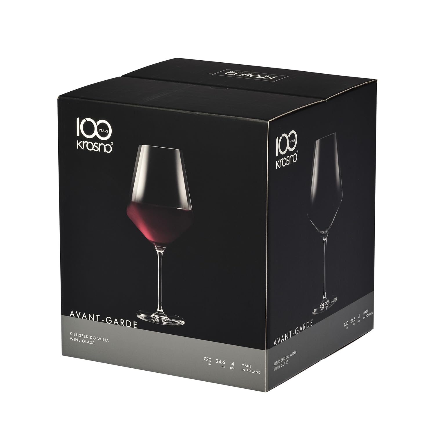 Krosno Kristall-Rotweingläser | 4er-Set | 730 ml | Avant-Garde Collection | Ideal für Haushalt, Restaurant und Party | Spülmaschinenfest | Bleifreies Kristallglas