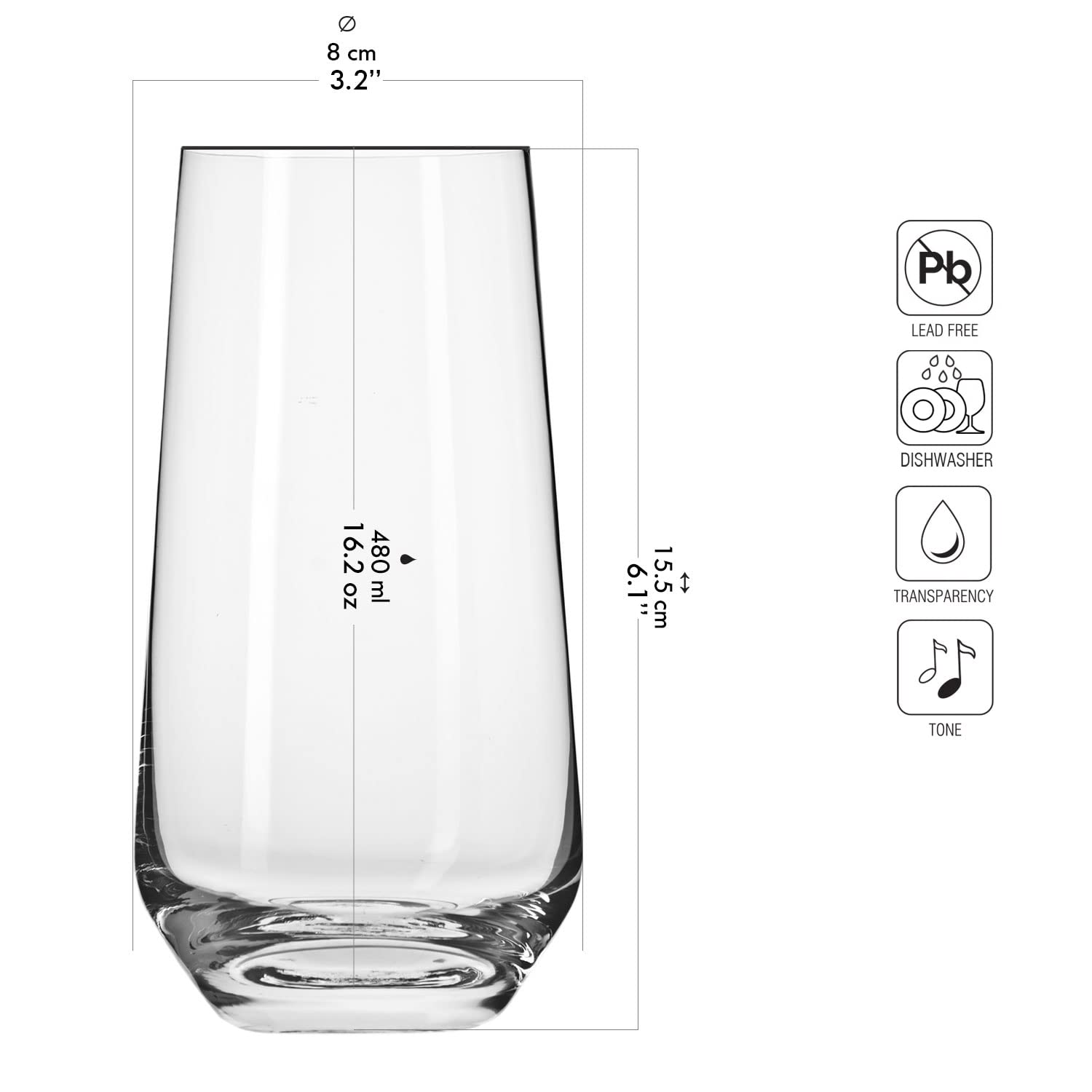 Krosno Wassergläser Longdrinkgläser Trinkgläser | Set von 6 | 480 ML | Splendour Kollektion | Perfekt für zu Hause, Restaurants und Partys | Spülmaschinenfest