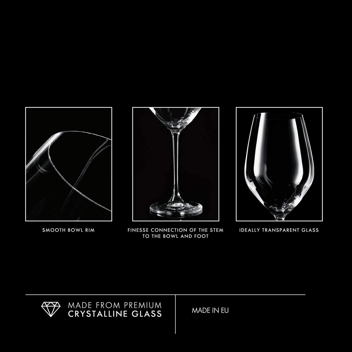 Spezifikation eines Glases für Rotwein aus der Splendour Kollektion:Volumen: 300 MLHöhe: 238 mmDurchmesser: 88 mm Der sich leicht nach oben hin verjüngende Kelch bietet eine geeignete Oberfläche für den Luftkontakt mit dem Wein und ermöglicht es Ihnen, den Duft länger anzuhalten. Mit dem langen Stiel vermeiden Sie, dass das edle Getränk erwärmt wird. Die Gläser wurden aus hochwertigem Crystalline Glas hergestellt, das sich durch hervorragende Transparenz und Haltbarkeit auszeichnet und bleifrei ist.
