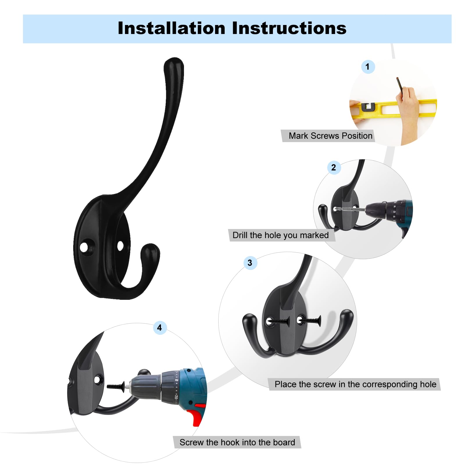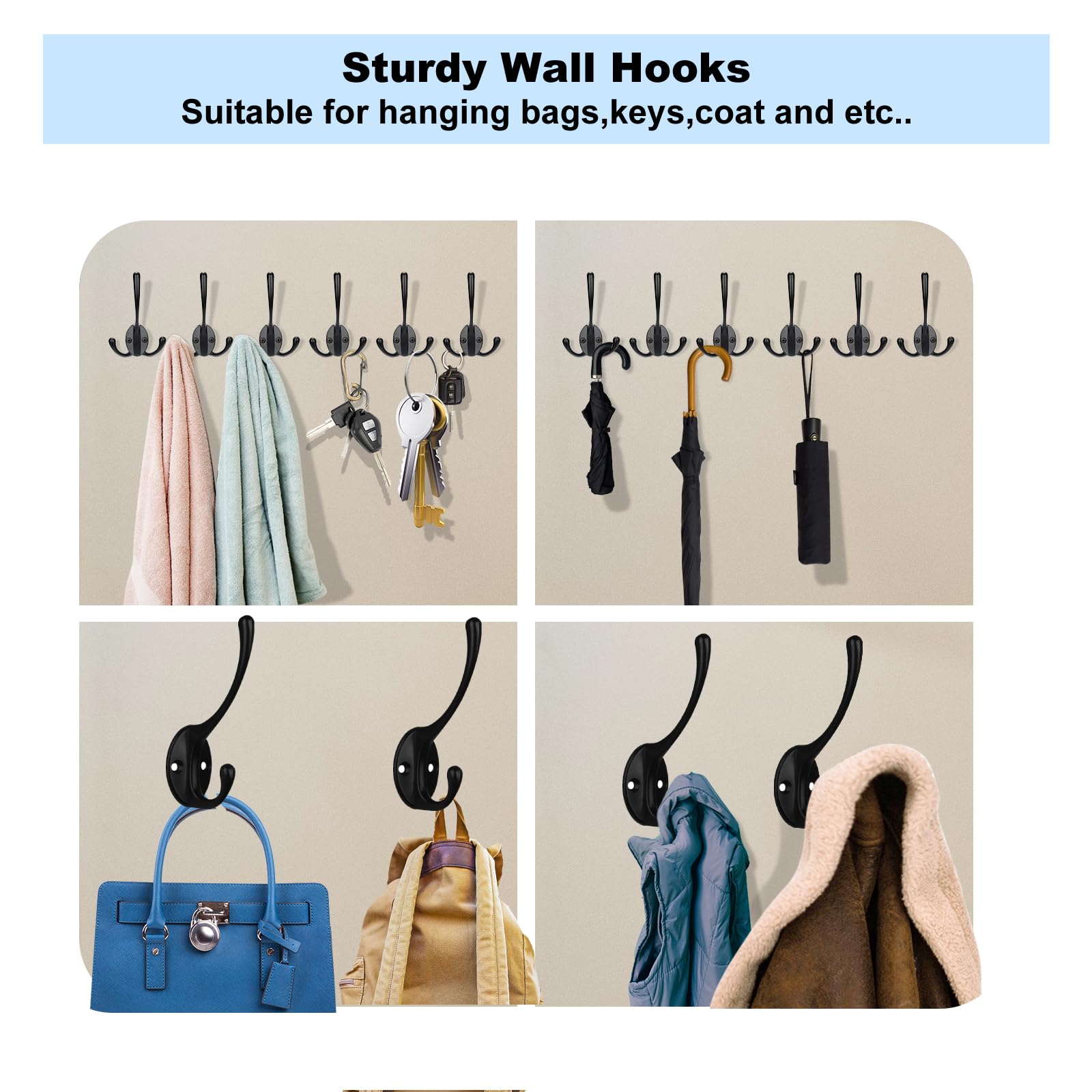 Kruodop Kleiderhaken zum Aufhängen, robust, Wandmontage, schwarz, Handtuchhaken, Metall, Einzel-Kleiderbügel mit Schrauben, Tasse, Retro, für Mäntel, Handtaschen, Handtücher, 6 Stück