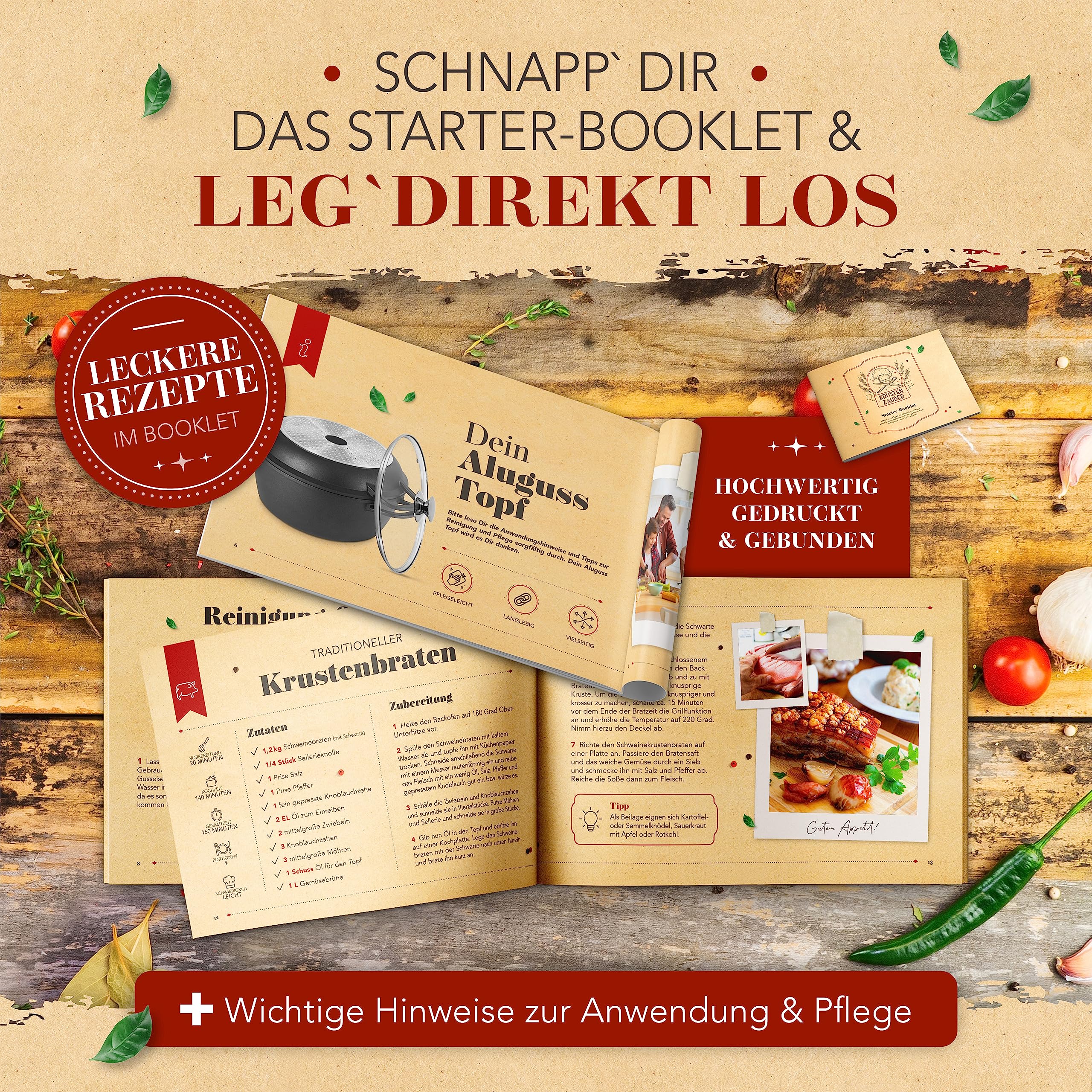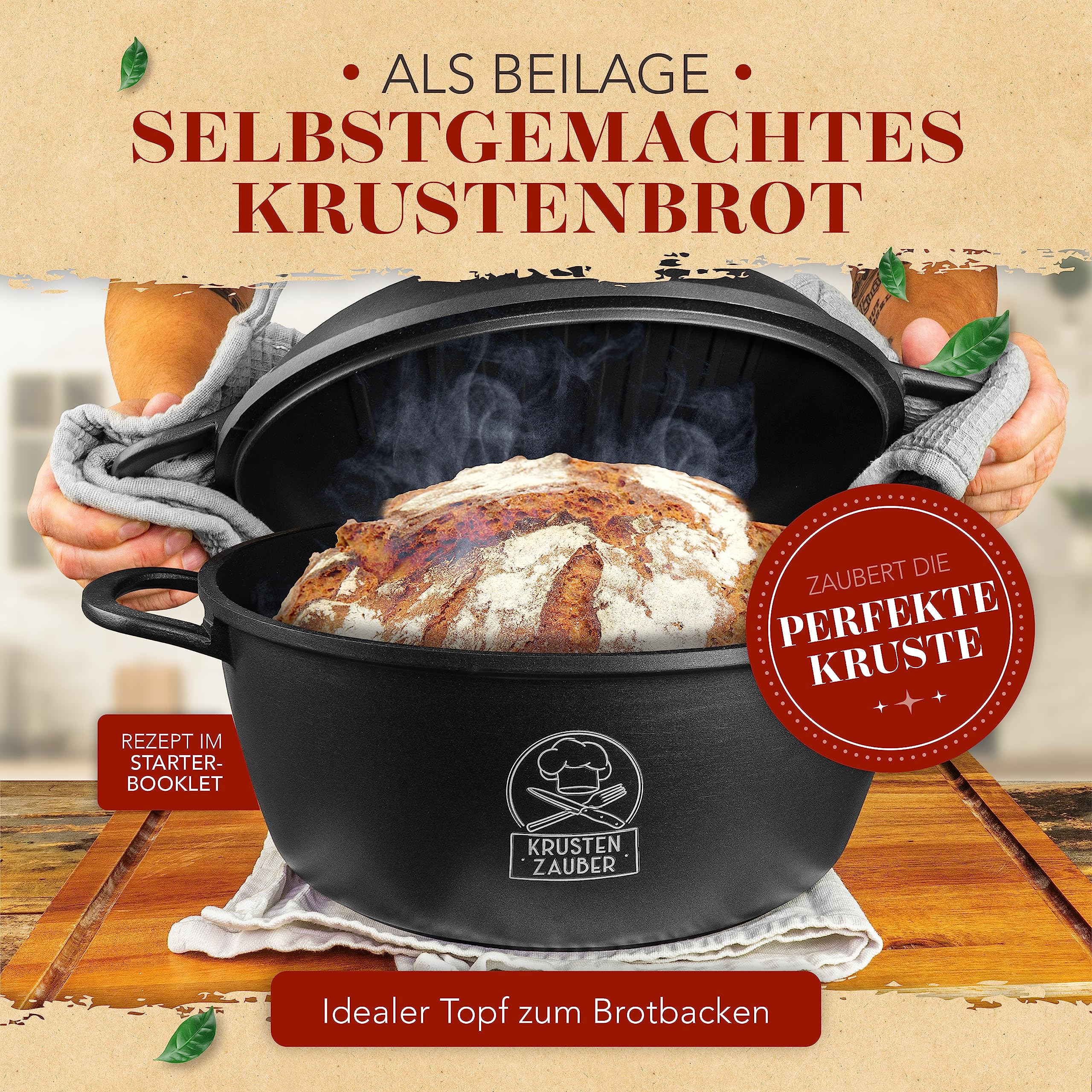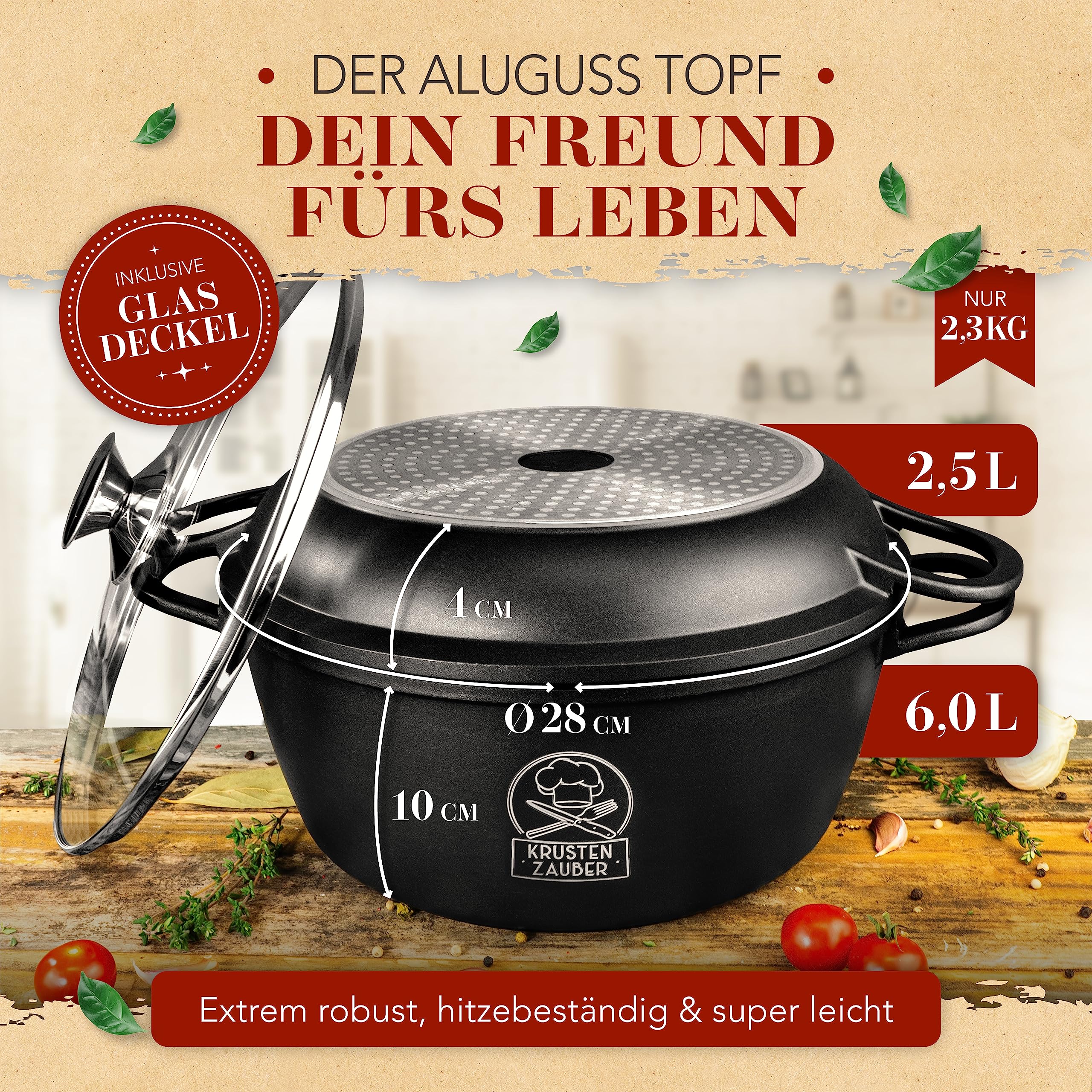 KRUSTENZAUBER 28cm Aluguss Bräter mit Deckel backofengeeignet [inkl. Glasdeckel] - 6L Aluminium Schmortopf & Bratpfanne - Idealer Bräter Induktion, Schmorpfanne, Bratentopf, Gussbräter, Kasserolle