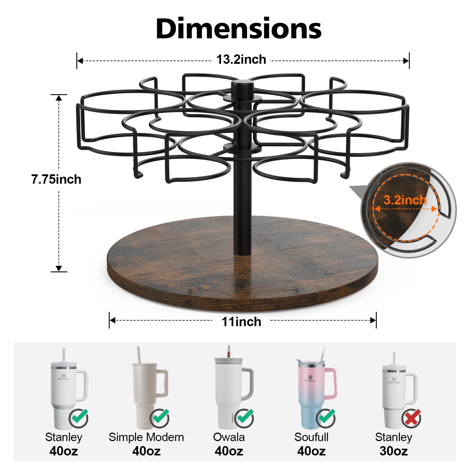 Kssiaz Stanley Cup Flaschenregal, Flaschen Organizer Schrank für Stanley WATERSY PRAOAHEI Hrobig 40oz, Drehbares Flaschen Organizer, 6 Ringe, Küchen Organizer Schrank, Vintage Braun