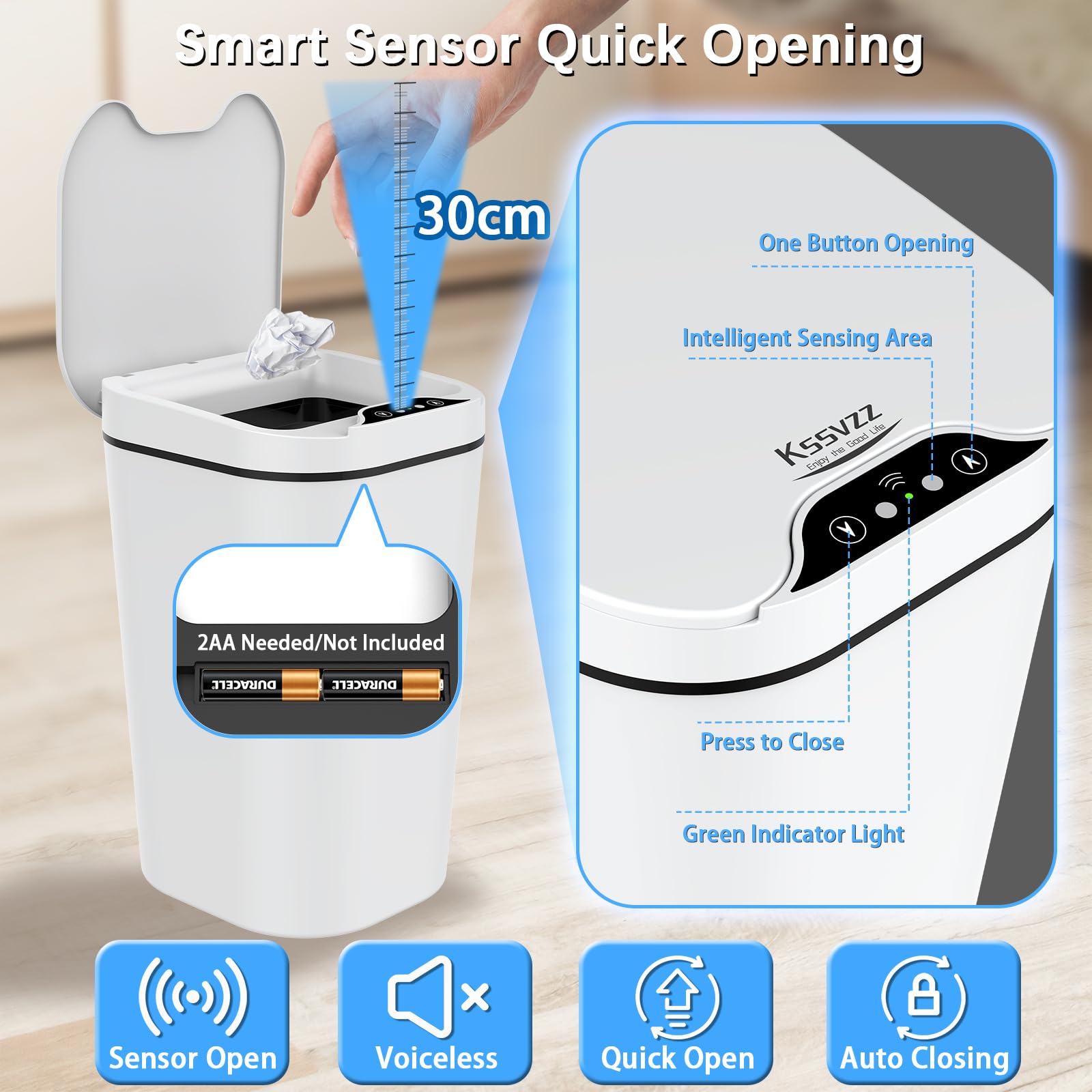 Kssvzz 2er Set Mülleimer Bad mit Sensor, 10L Automatischer Mülleimer mit Deckel, Elektrischer Mülleimer für Büro, Schlafzimmer, Küchen (Weiss)
