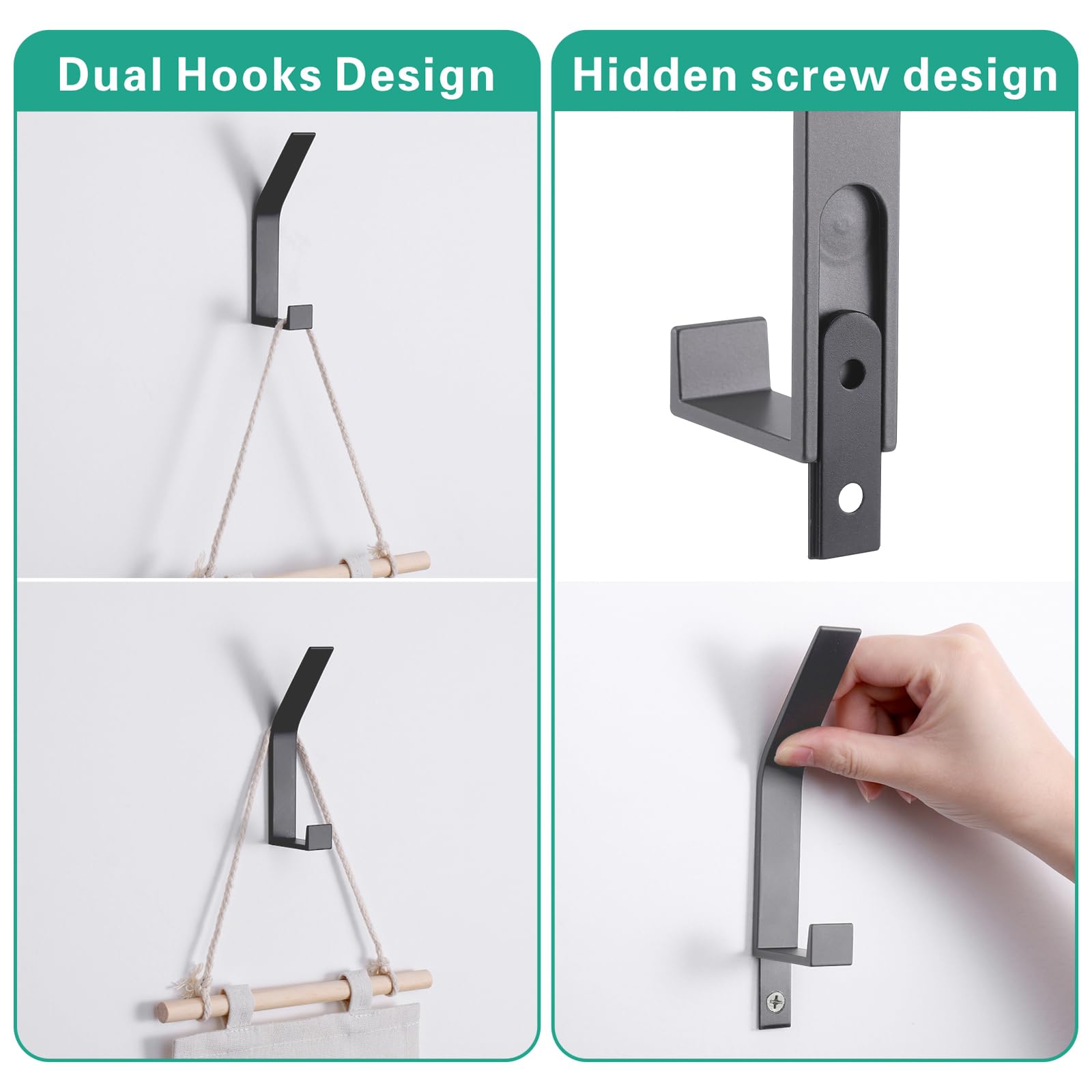 Kssvzz 6 Stück Schwarz kleiderhaken Wand zum Bohren-Schrauben unsichtbar, Moderne Garderobenhaken Garderobenleiste Wand für Jacken, Mäntel, Cap, Schals, Handtuch, Handtaschen und Mehr