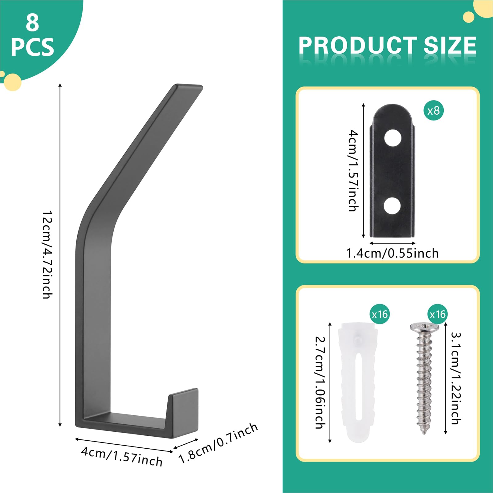 Kssvzz 8 Stück Grau kleiderhaken Wand zum Bohren-Schrauben unsichtbar, Moderne Garderobenhaken Garderobenleiste Wand für Jacken, Mäntel, Cap, Schals, Handtuch, Handtaschen und Mehr