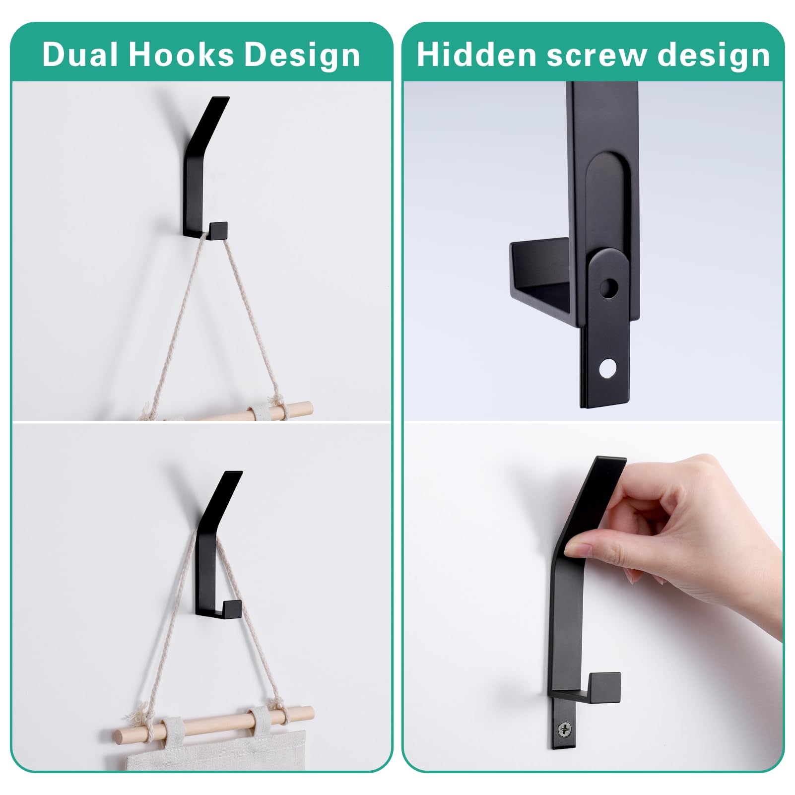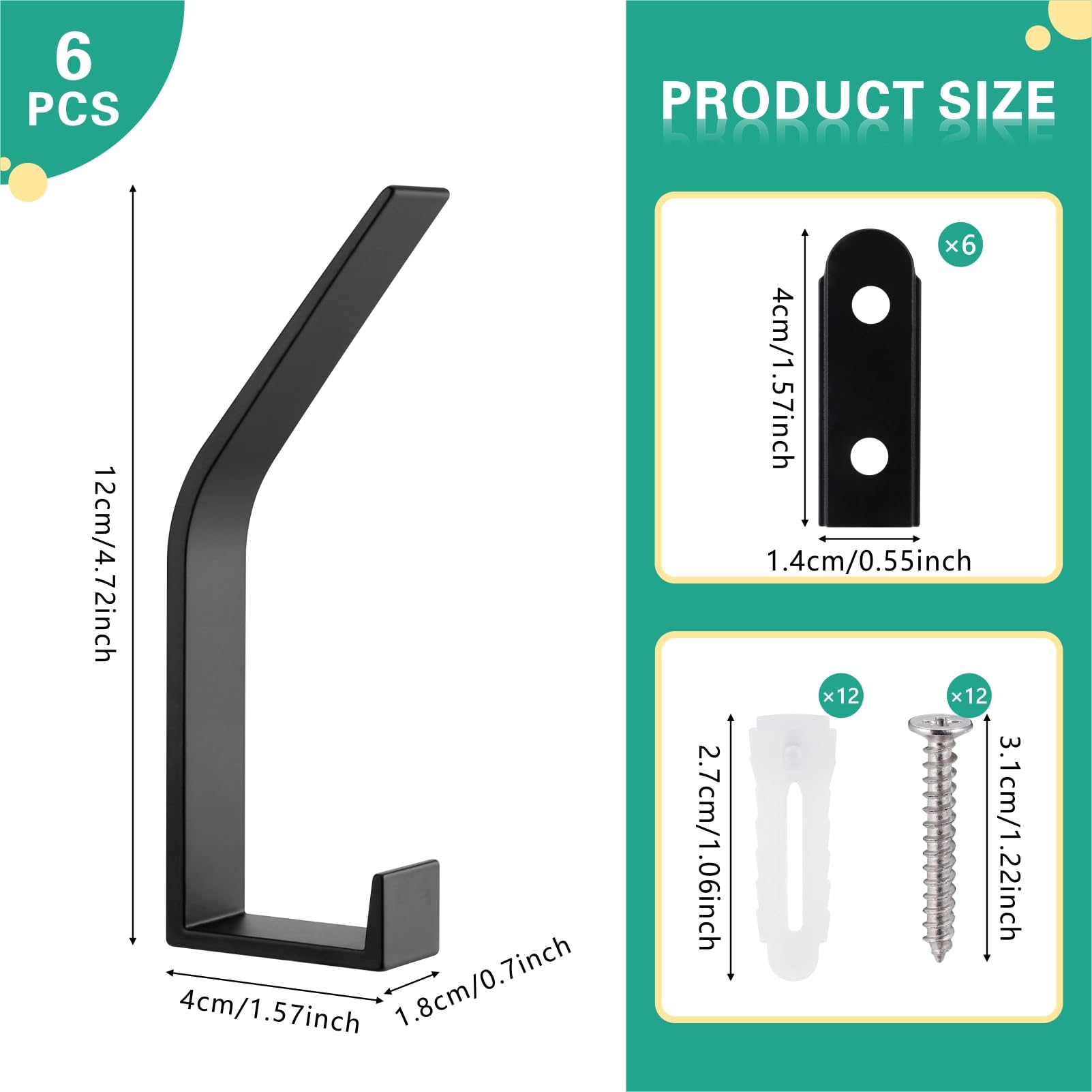 Kssvzz 6 Stück Schwarz kleiderhaken Wand zum Bohren-Schrauben unsichtbar, Moderne Garderobenhaken Garderobenleiste Wand für Jacken, Mäntel, Cap, Schals, Handtuch, Handtaschen und Mehr