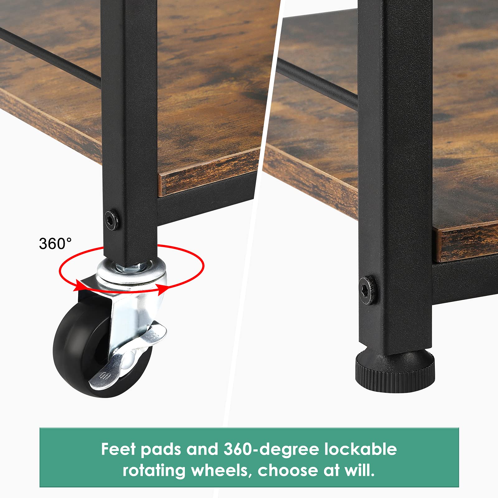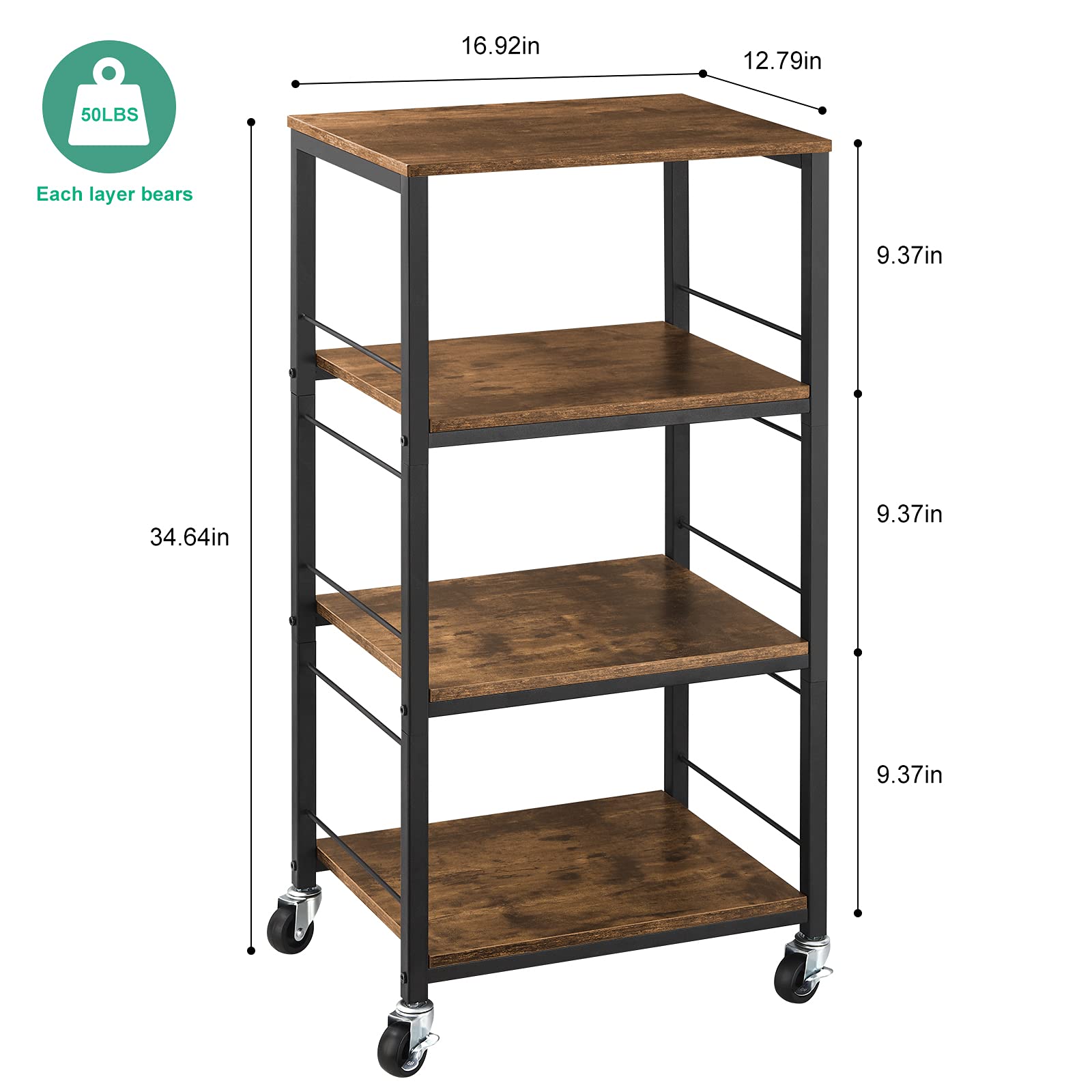 Küchenwagen auf Rädern, rollende Kücheninselwagen mit Rollen und Aufbewahrung, 4-stöckig, Bauernhaus-Servierwagen, Ständer mit Holztischplatte für Wohnzimmer, Badezimmer, Braun