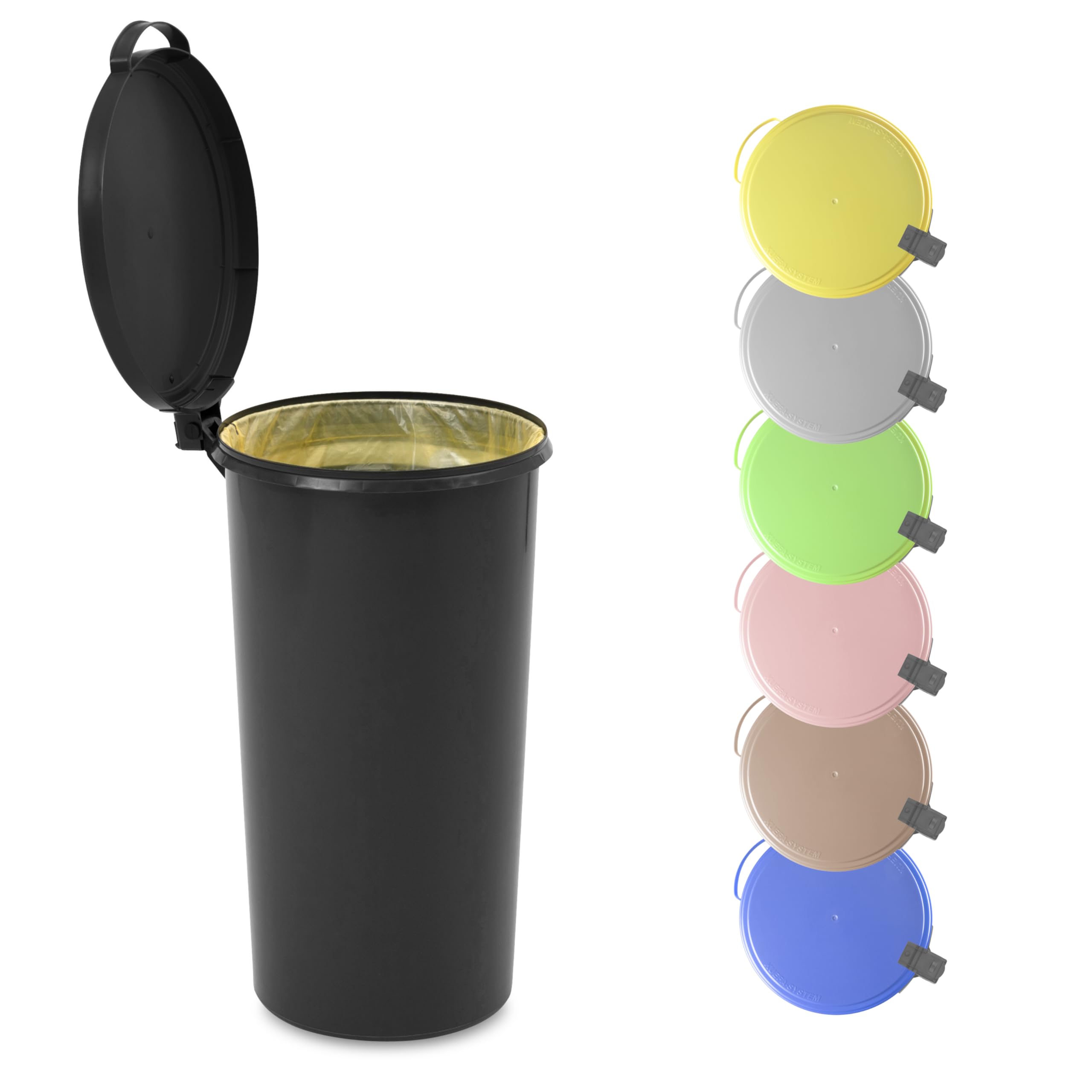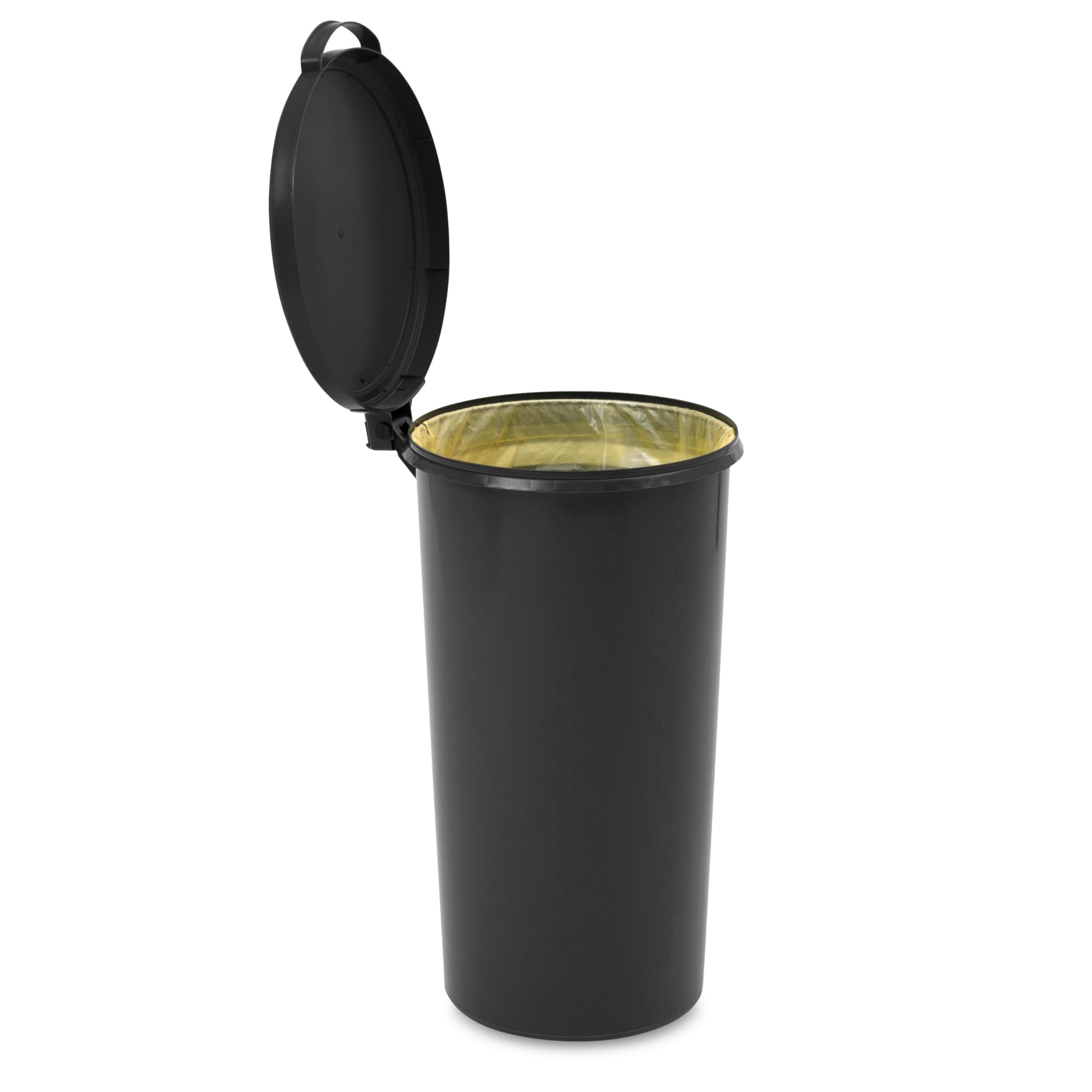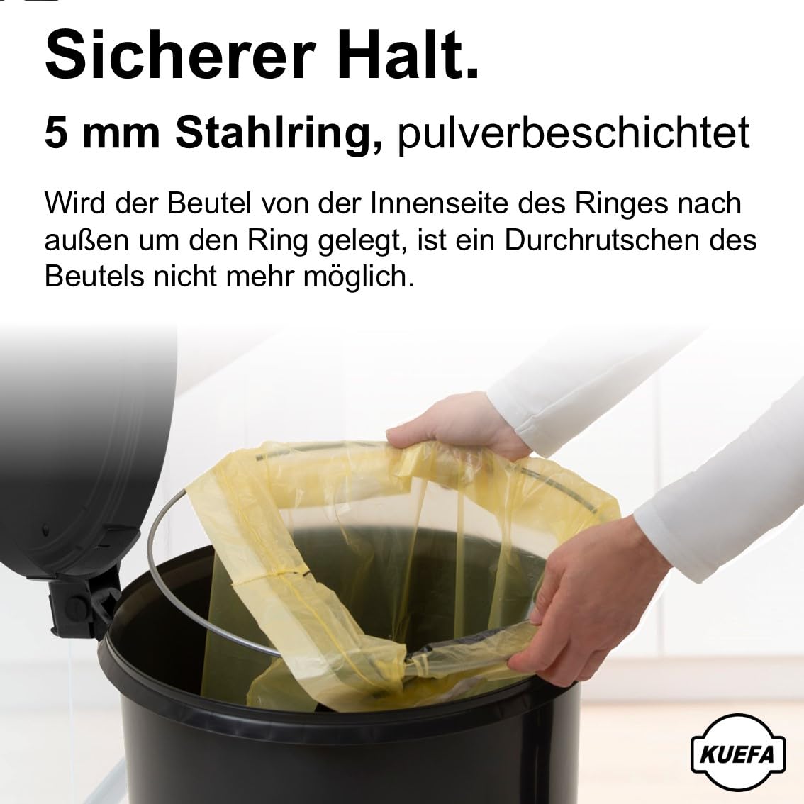 Der hochwertige KUEFA VL 60L Mülleimer besteht aus einer geschlossenen Kunststofftonne, einem beschichteten Stahlring (zur Fixierung des Abfallbeutels) und einem eleganten, geruchsdichten & UV-beständigen Kunststoffdeckel mit Scharnier. Durch die einfache und effektive Halterung verschwindet der Müllsack vollständig im Unterteil und ist im geschlossenen Zustand nicht mehr zu sehen. Der Sammelbehälter ist für Säcke des Dualen Systems Deutschland mit einer Breite grösser 59 cm ausgelegt und kann aber auch mit anderen Müllbeuteln entsprechender Grösse verwendet werden. Der KUEFA Sammelbehälter ist universell einsetzbar und eignet sich aufgrund der unterschiedlichen Deckelfarben bestens zum Trennen, Sammeln und Aufbewahren von Pfandflaschen, Leergut, Altpapier, Streusalz, Grillkohle und Katzenstreu.