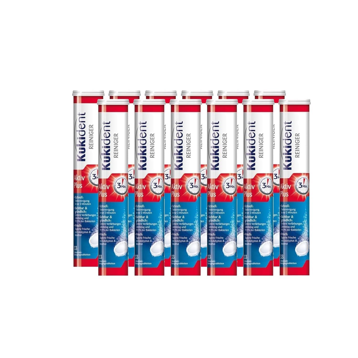 Kukident Aktiv Plus Reinigungstabletten - Tabs zur Reinigung von Zahnersatz, Zahnprothese & Gebiss - 12 x 33 Tabletten