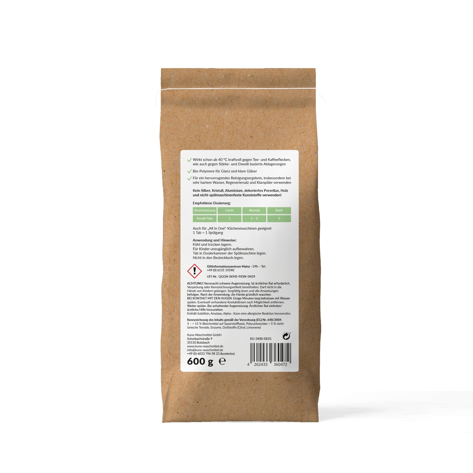 Unsere Spülmaschinentabs bieten effektive Reinigung in einer kompakten Grösse, die 1/3 kleiner ist als herkömmliche Tabs, und beanspruchen somit weniger Platz im Vorratsschrank. Verpackt in Papier anstelle von Plastik, tragen sie zur Reduzierung der Müllproduktion bei. Hergestellt aus biologisch abbaubaren Materialien, zersetzen sich die Tabs nach Gebrauch vollständig und hinterlassen keine schädlichen Rückstände. Trotz ihrer Grösse liefern sie eine herausragende Reinigungsleistung, die selbst hartnäckige Verschmutzungen mühelos entfernt und Ihr Geschirr strahlend sauber hinterlässt. Diese umweltschonende Wahl hilft, unseren Planeten zu schützen.